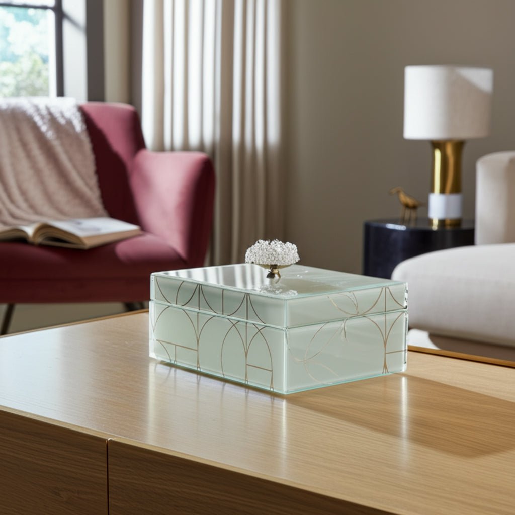 8x5" Sparkly Geo Glass Box Stone Top, Silver - Al Rugaib Furniture