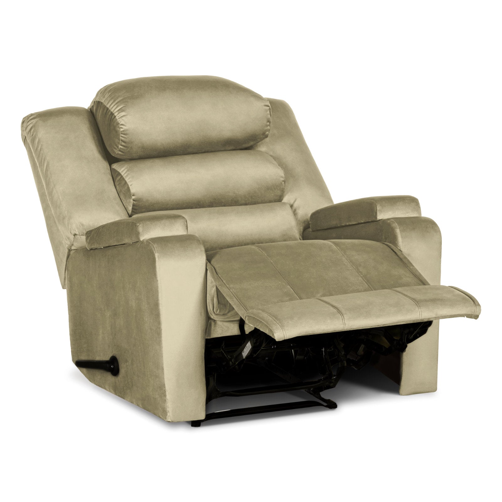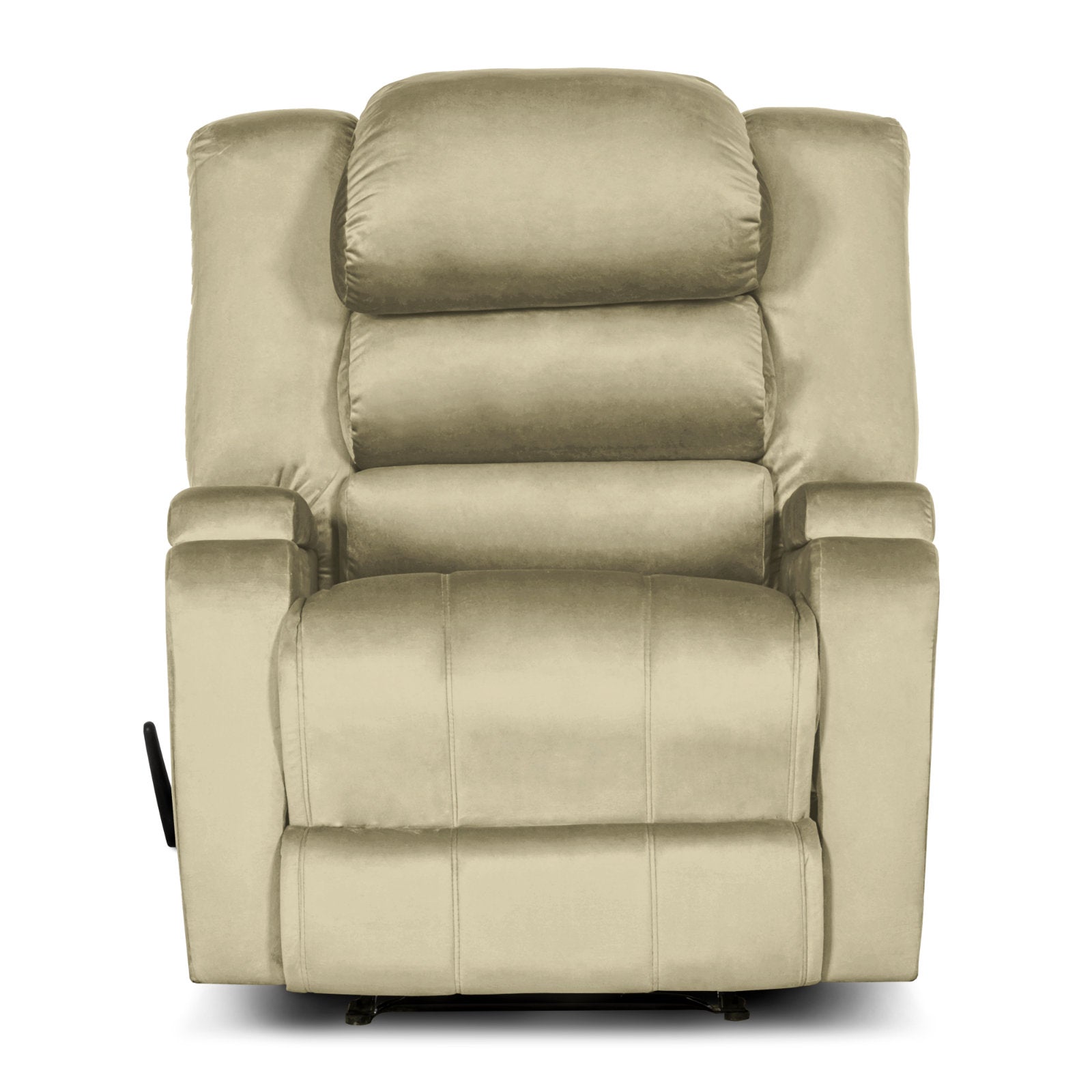 Velvet Upholstered Rocking Recliner Chair With Bed Mode From In House - Dark Ivory - AB07