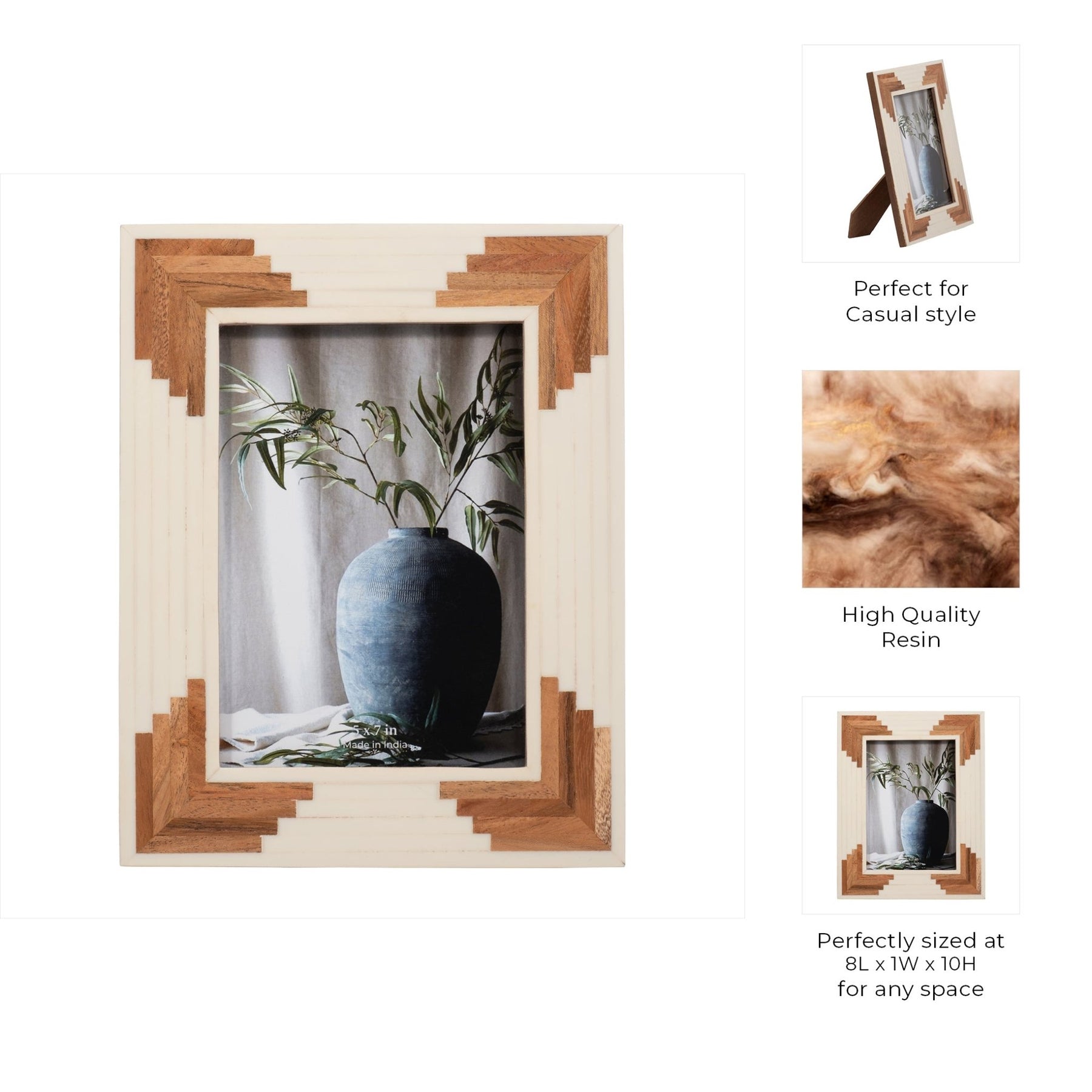 Resin, 5x7 Cascading Wood Photo Frame, White - Al Rugaib Furniture