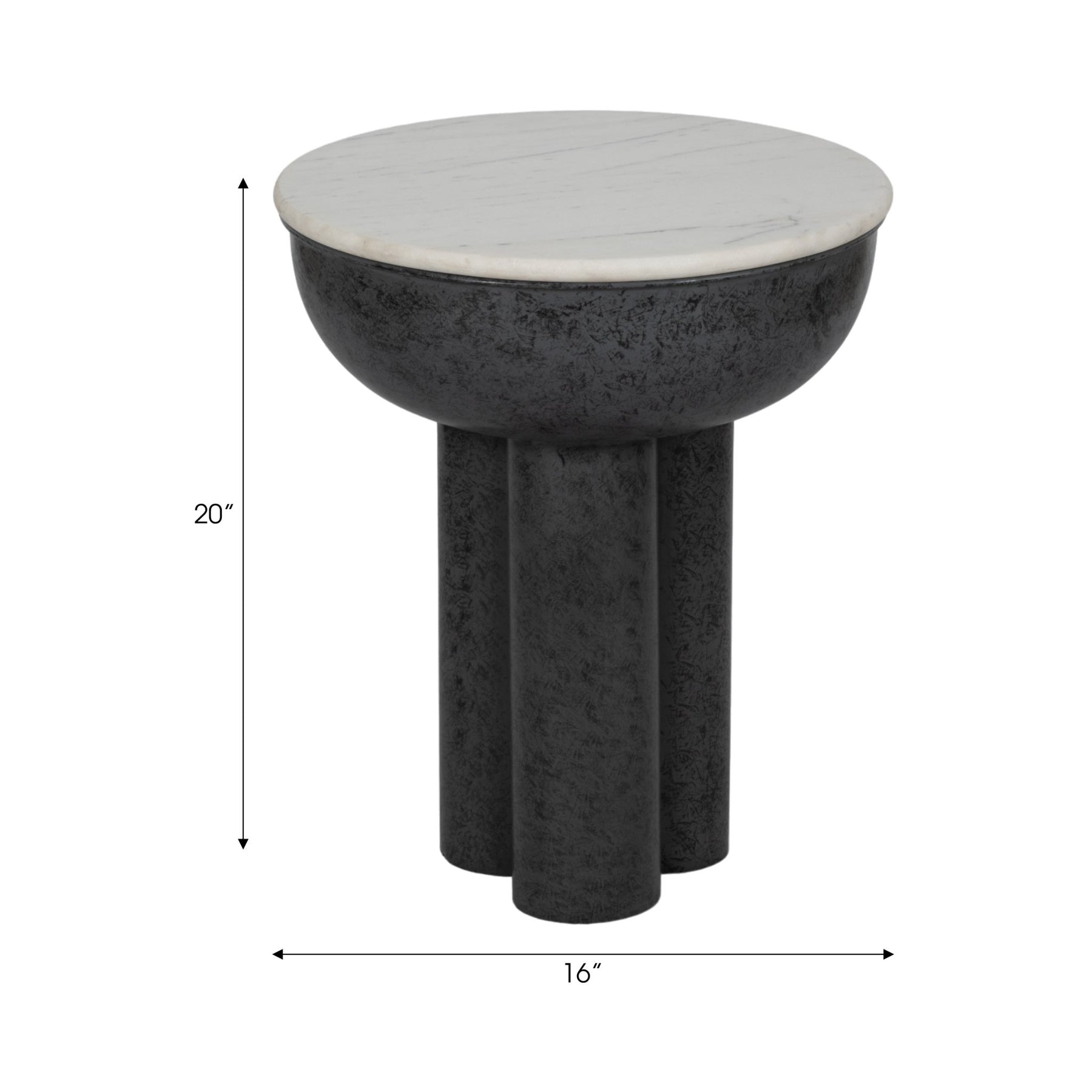 20" Chunky Leg Accent Table Marble Top, White/blk