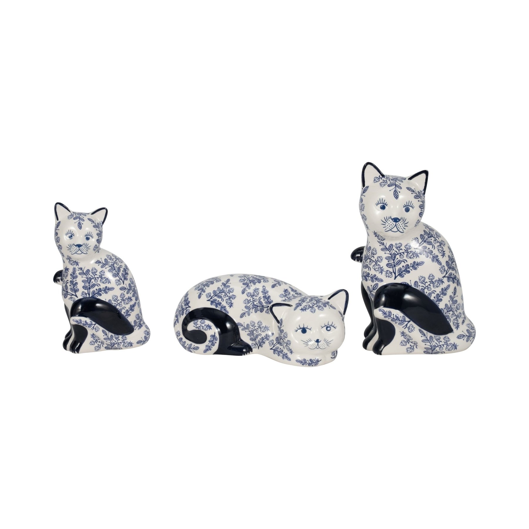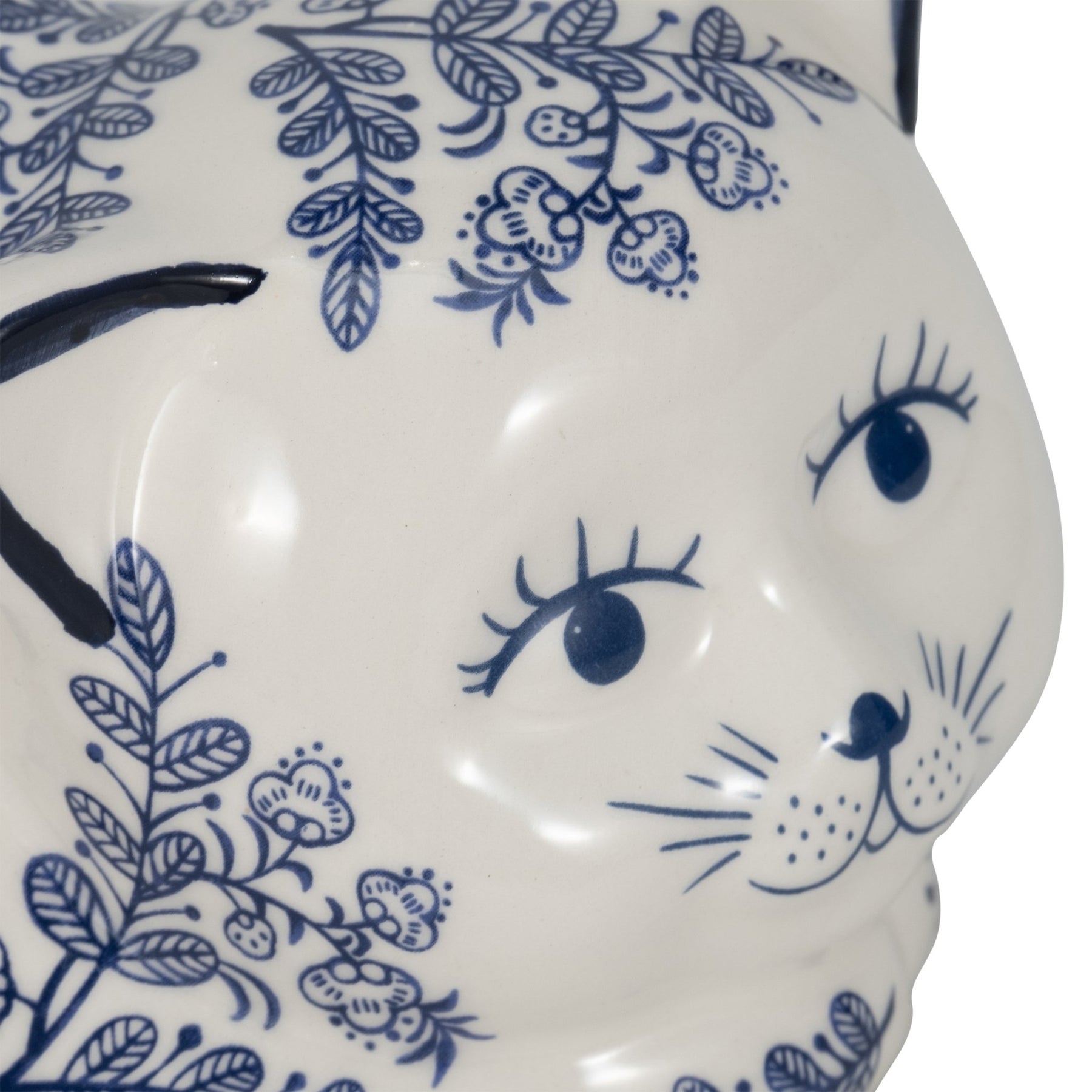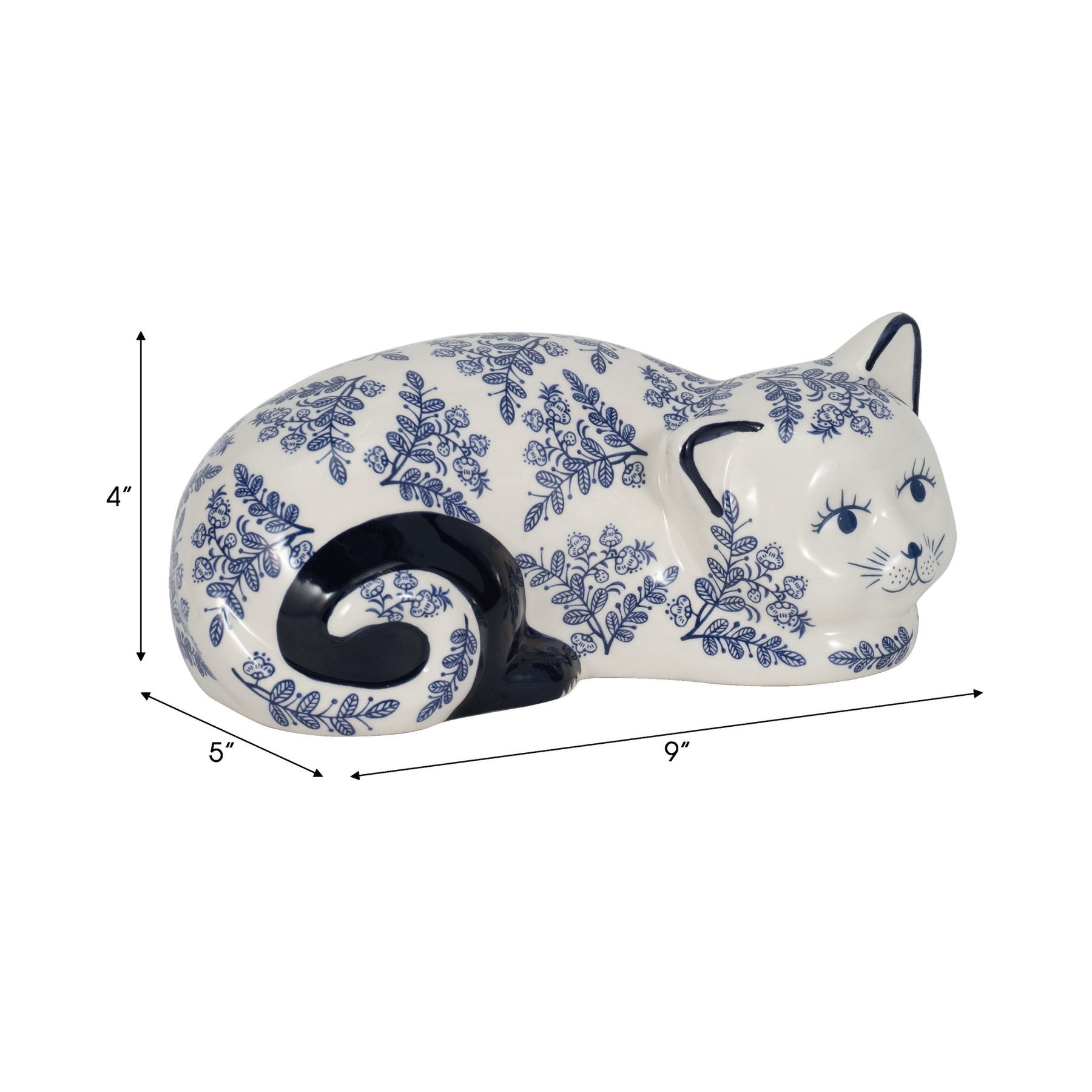 CER, 9" SLEEPING CHINOISERIE CAT, BLUE/WHITE