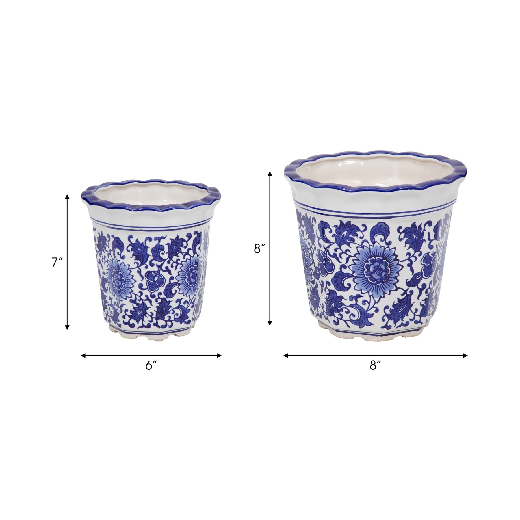 Cer, S/2 6/8" Chinoiserie Pot Planters, Blue/wht