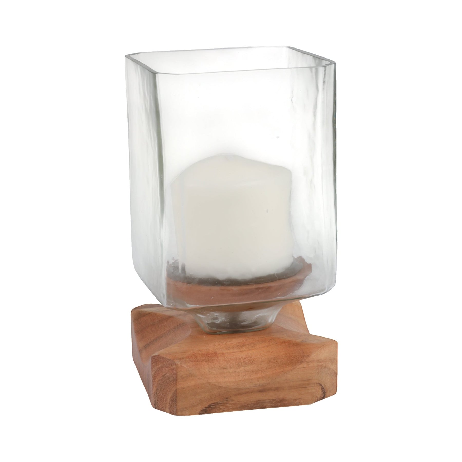 9" Jarvie Small Wood & Glass Candle Hurricane,brwn