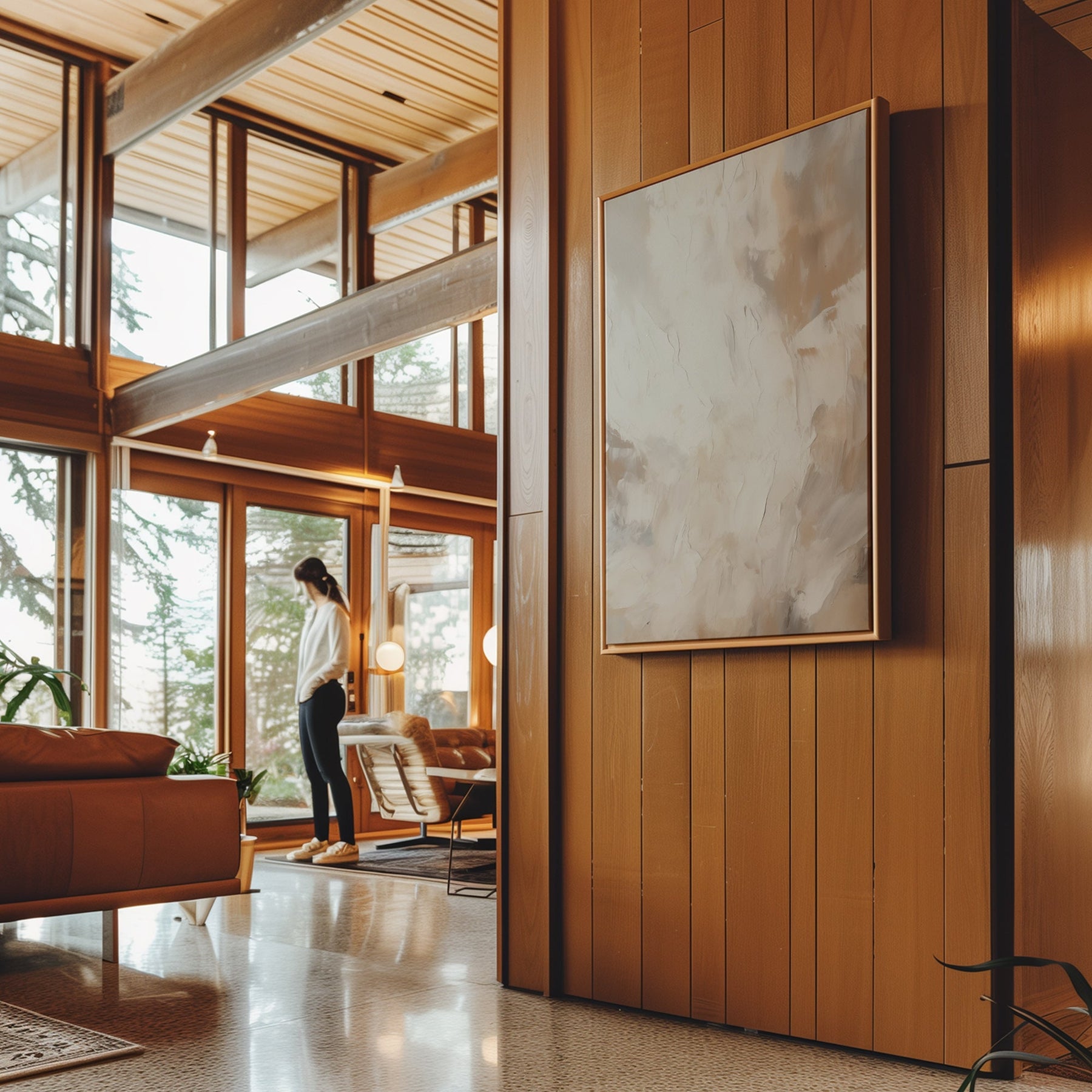 Canvas Wall Art Stretched Over Wooden Frame with Floating Frame and Brown Smoke Painting CV4134 - Al Rugaib Furniture