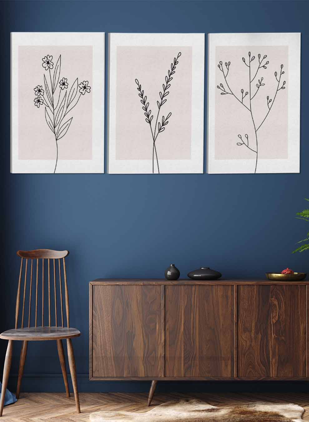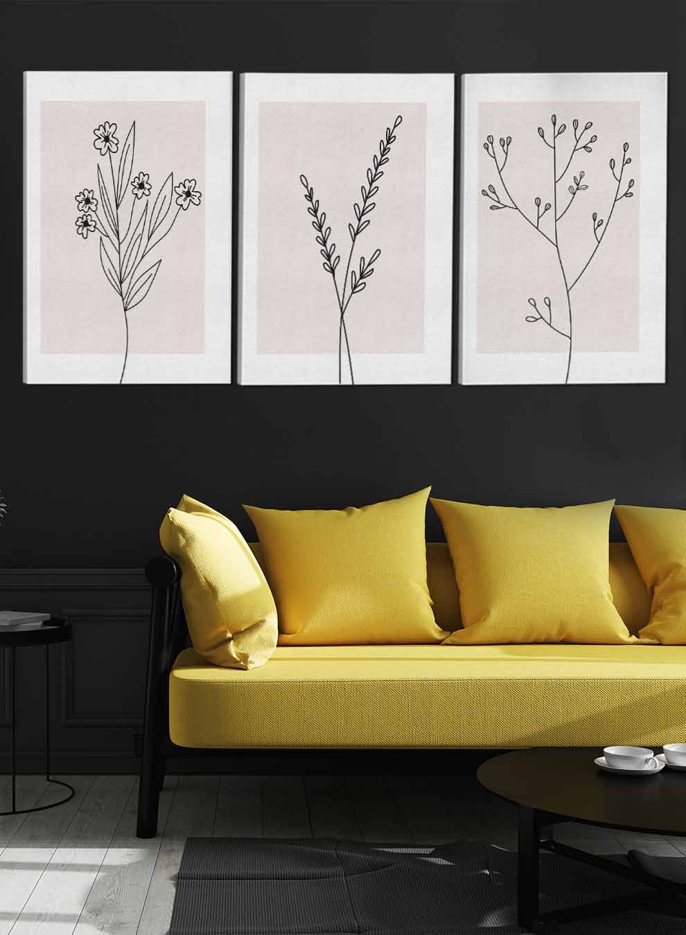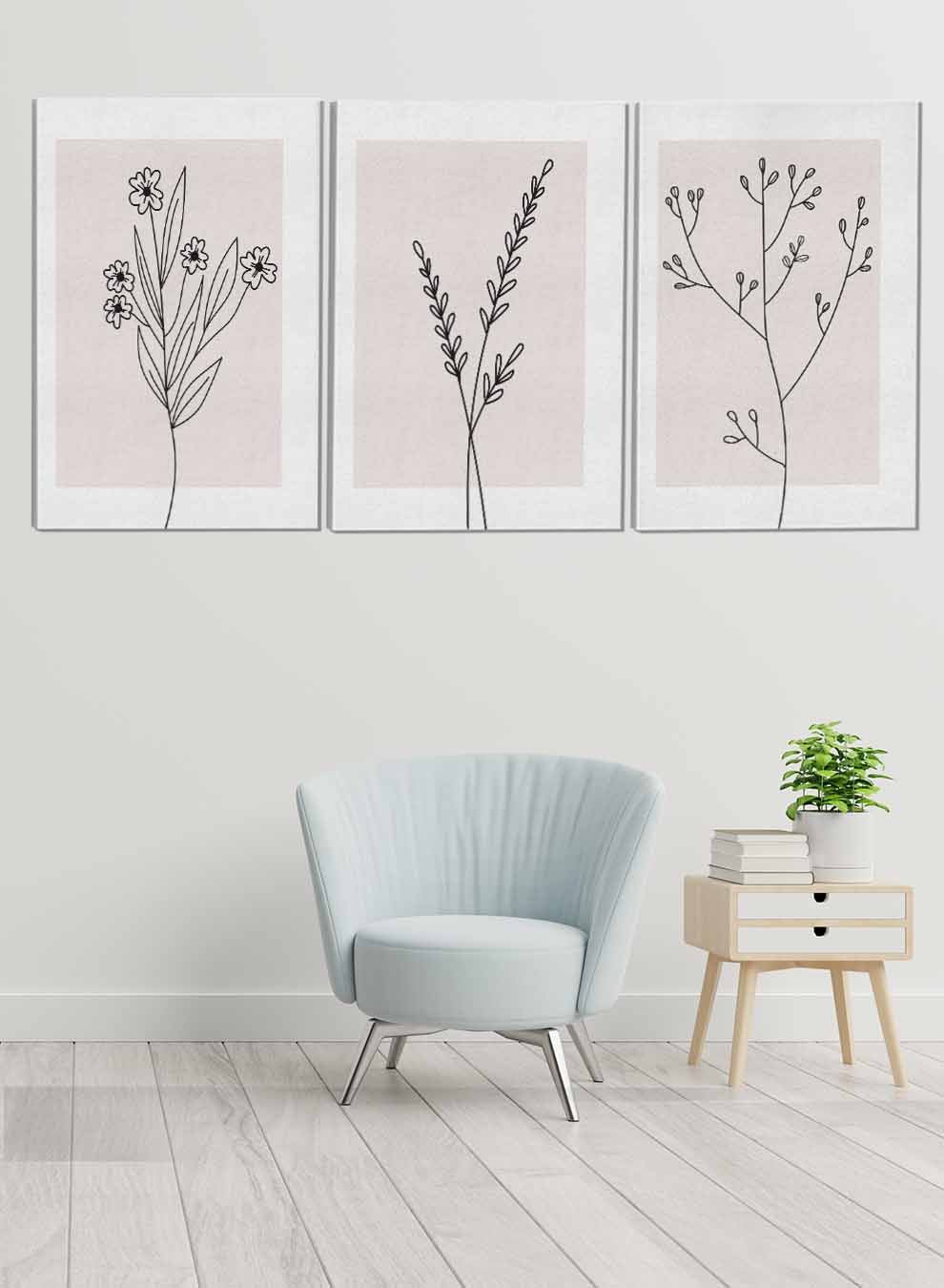 Flowers Leaf Branch Paintings(set of 3)