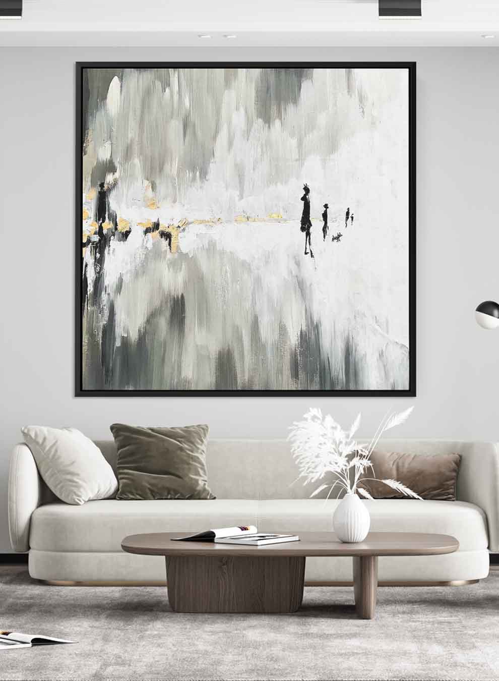 Square Canvas Wall Art Stretched Over Wooden Frame with Black Floating Frame and Oil Painting18