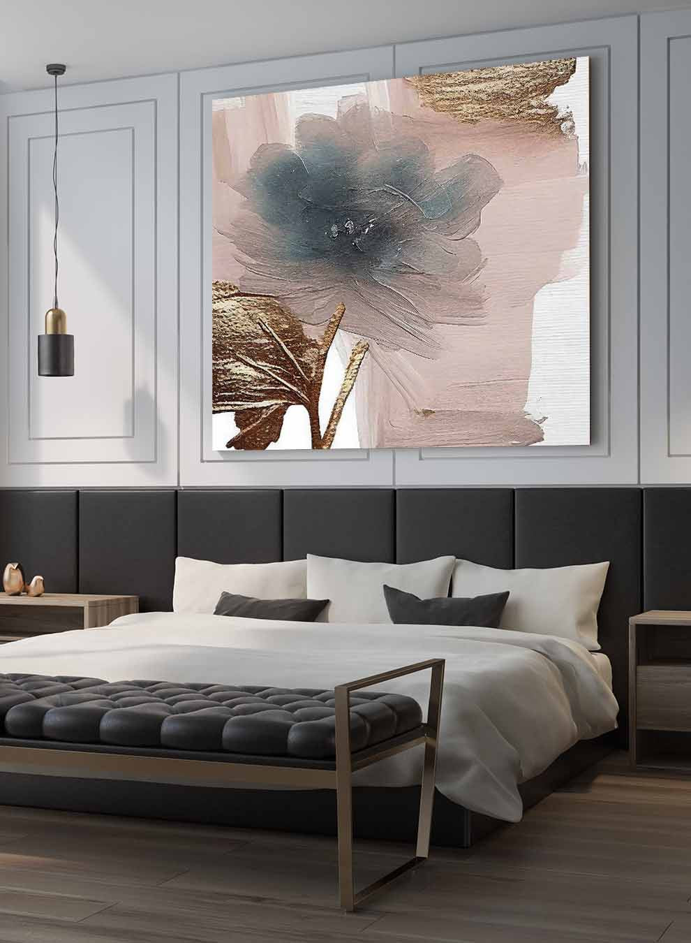 Square Canvas Wall Art Stretched Over Wooden Frame with Gold Floating Frame and Oil Painting14