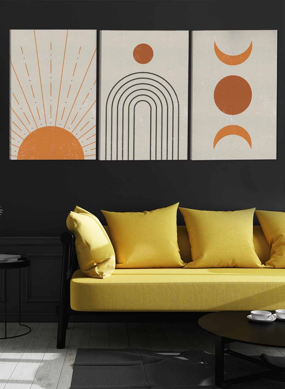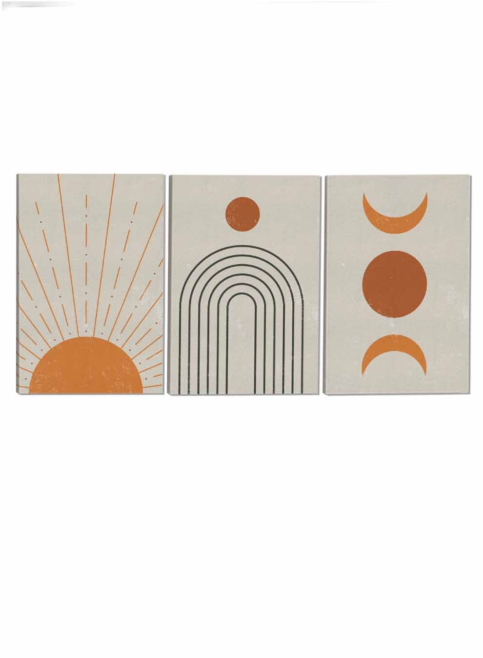 Sun Moon Crescent Moon Abstract Paintings(set of 3)