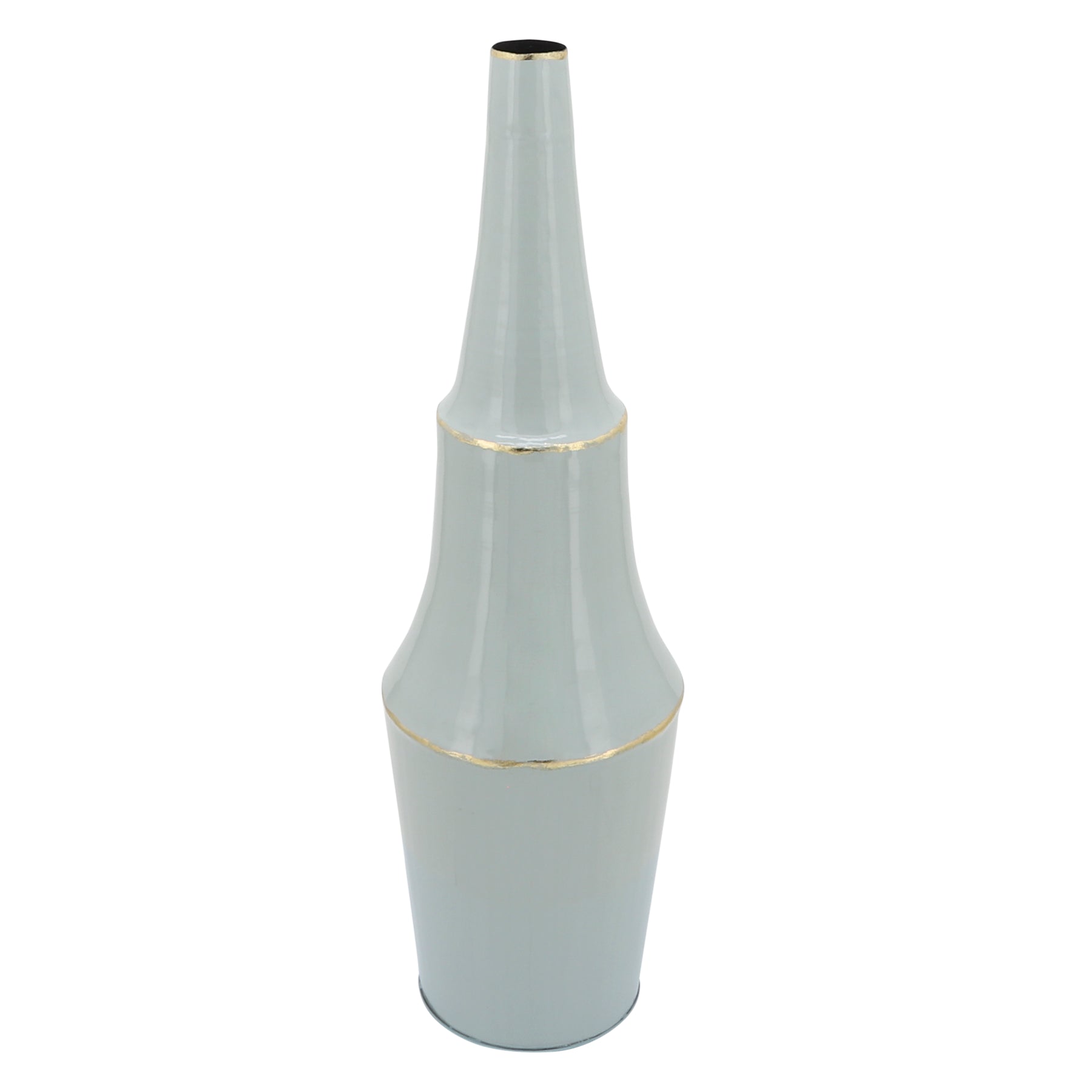 METAL, 33"H VASE W/ GOLD TRIMS, GRAY