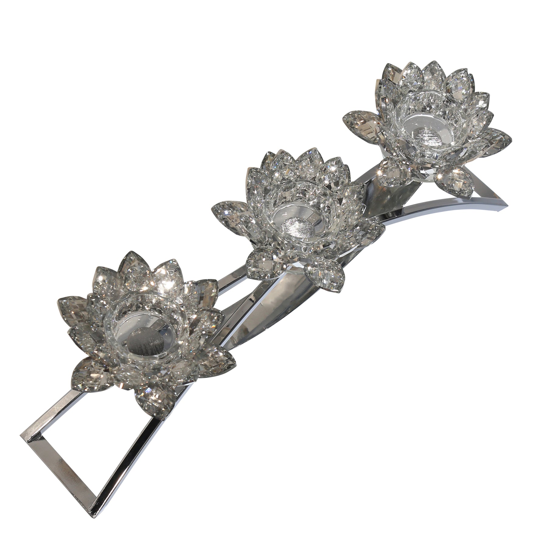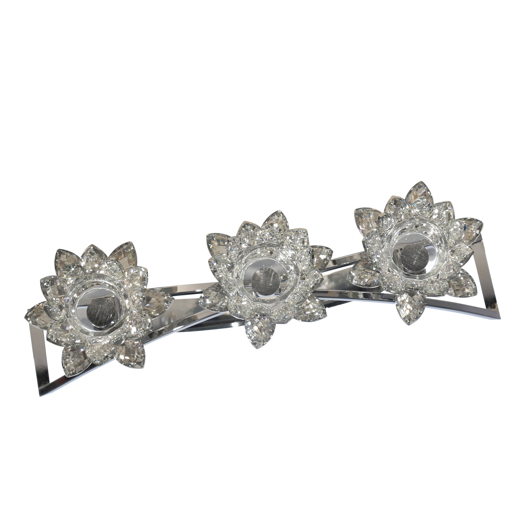 METAL/GLASS 16" 3 LOTUS VOTIVECANDLE HOLDER, SILVE