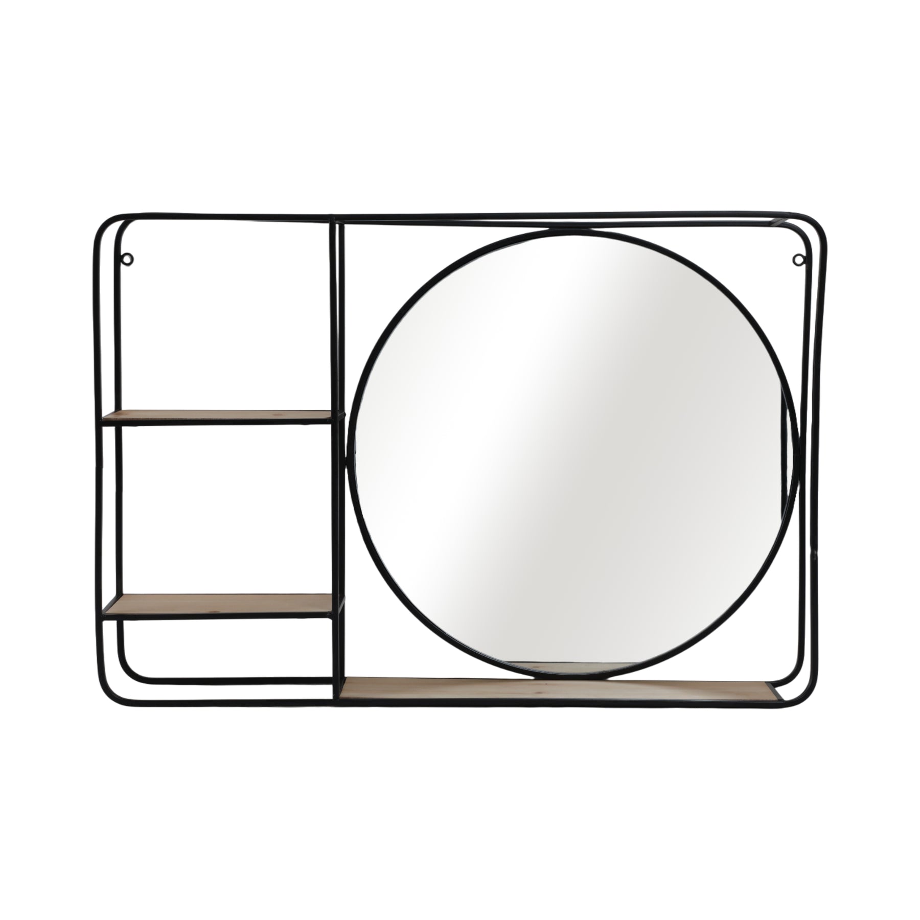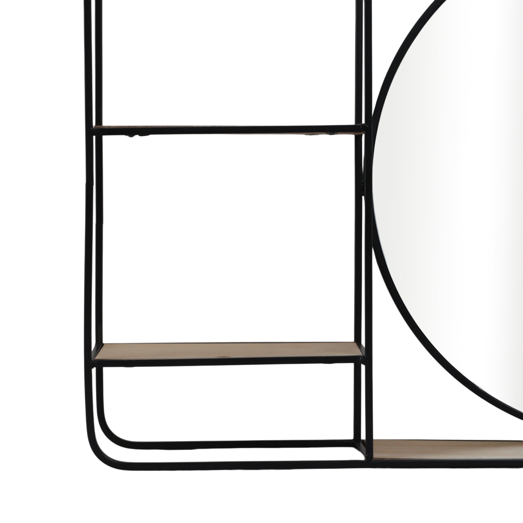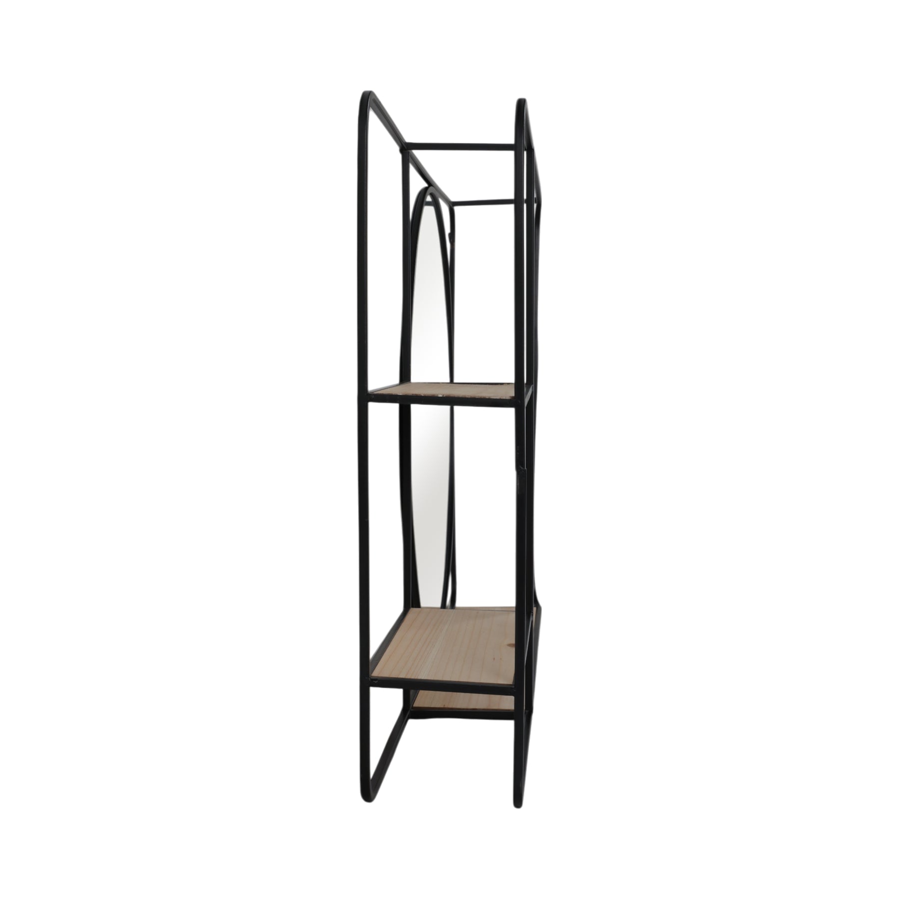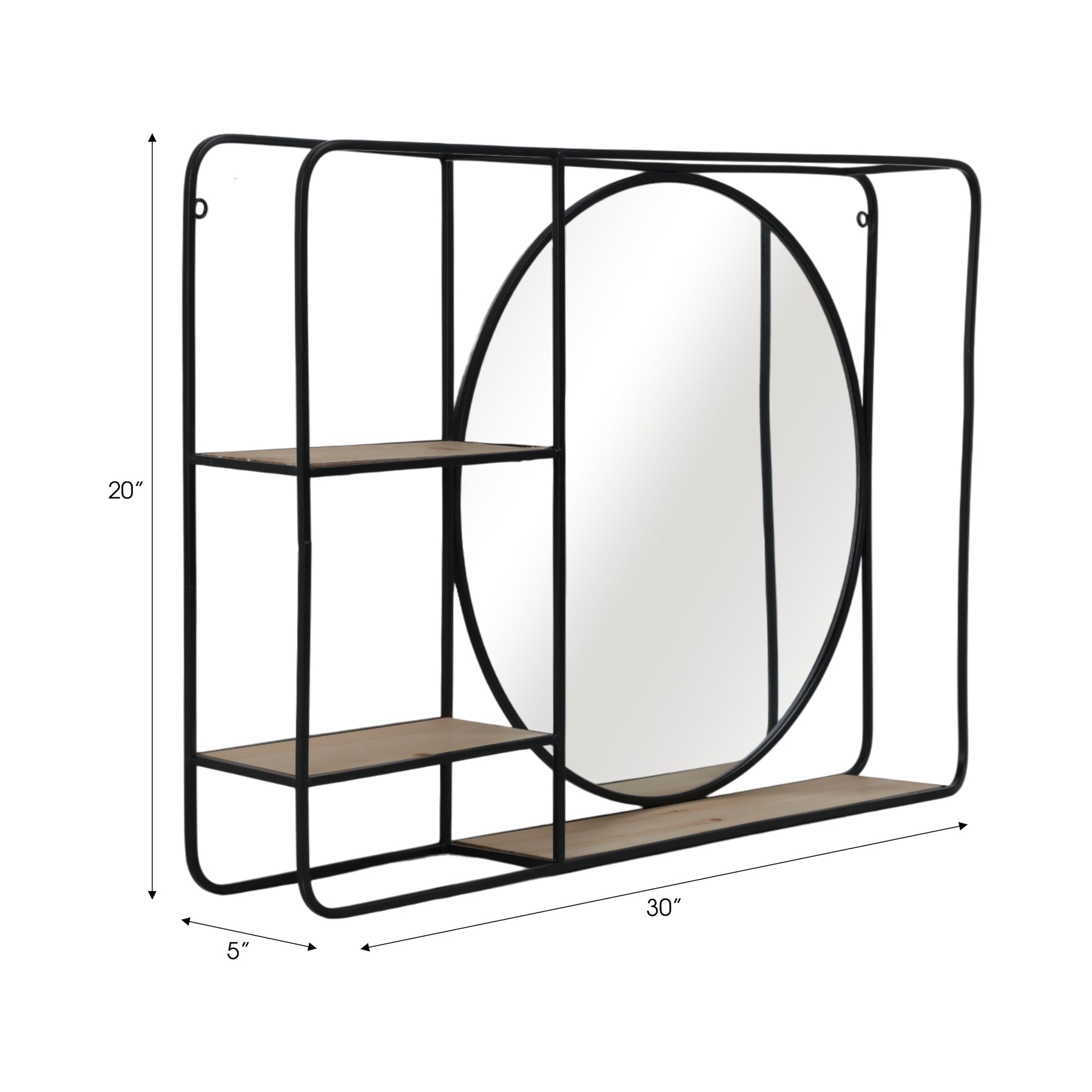 METAL/WOOD 30"LWALL SHELF WITH MIRROR, BLACK