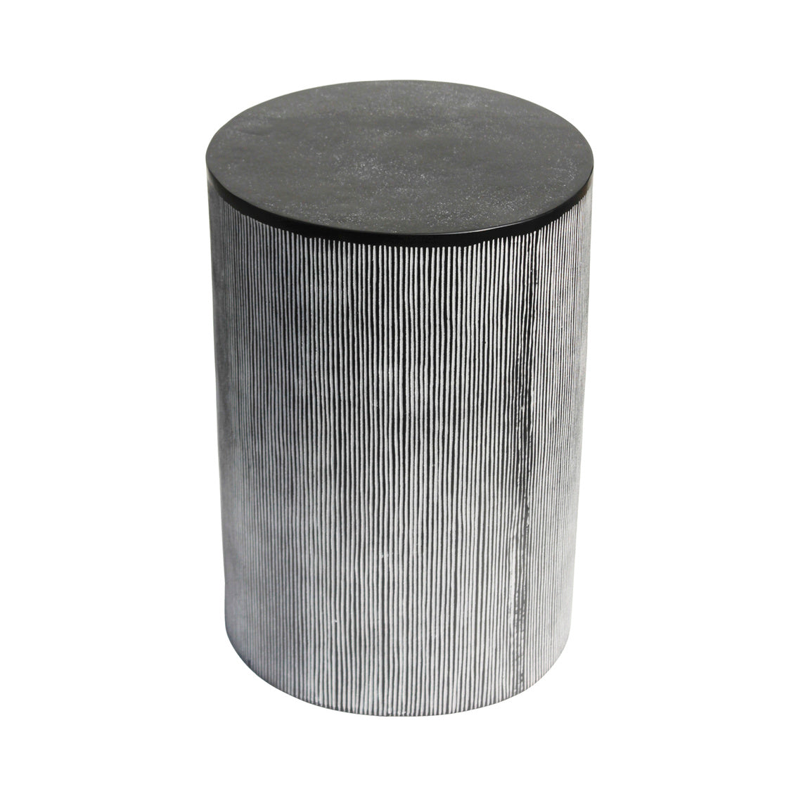 The Althea end table adds whimsy to your decor. It boasts a minimal design with a solid cylinder base and a striped finish. This little end table is made from all-over aluminum for a versatile look.