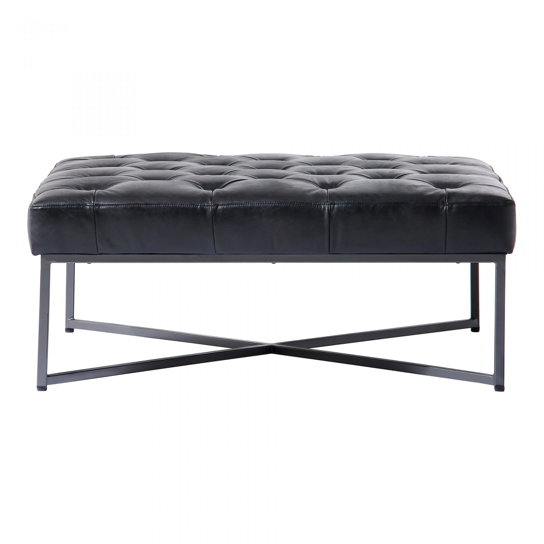 Nothing says modern like multi-purpose. A subtle and strong contemporary-modern design helps the Thad ottoman bring bold flair to your living room. With a low profile and large build, its roomy design means Thad is perfect for those in need of more tabletop space—or even an occasional seat. A pine frame gives this ottoman support, while gentle foam cushioning gives it a comfy softness, making it perfect for guests to put their feet up. Tufted, top-grain buffalo leather upholstery in black offers timeless style. An ottoman that owns the space it occupies, while bringing maximum versatility.
