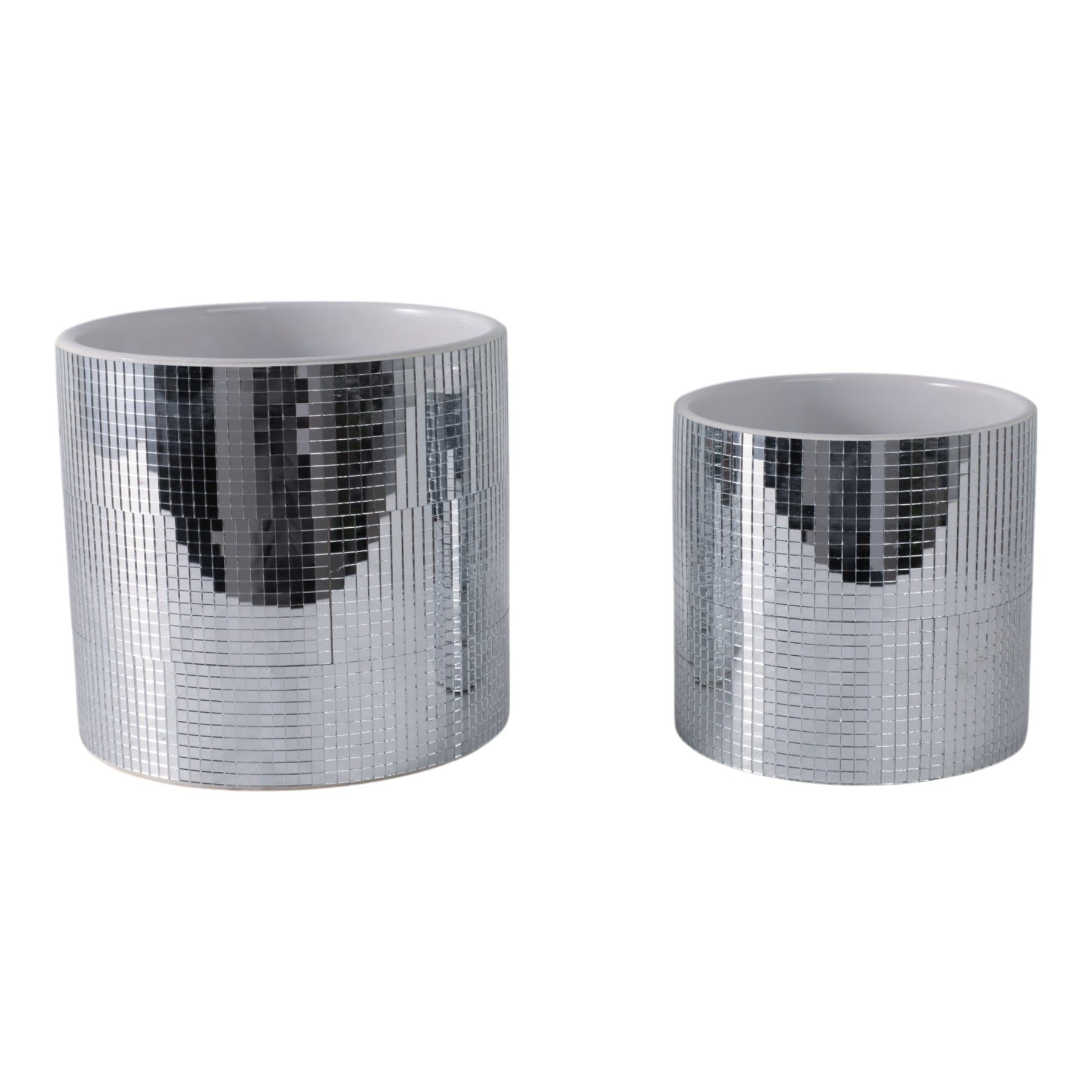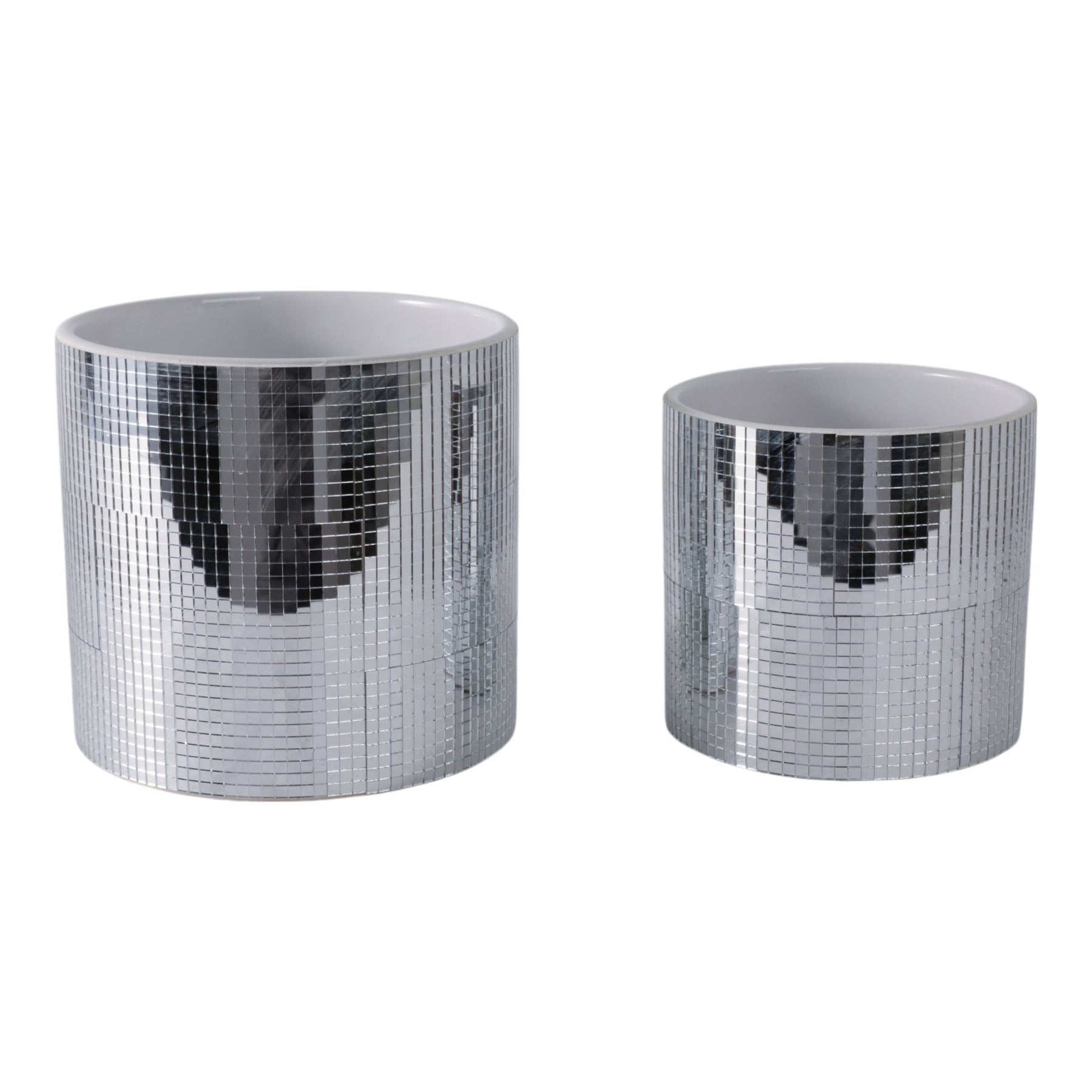 S/2 6/7" Disco Planter, Silver - Al Rugaib Furniture