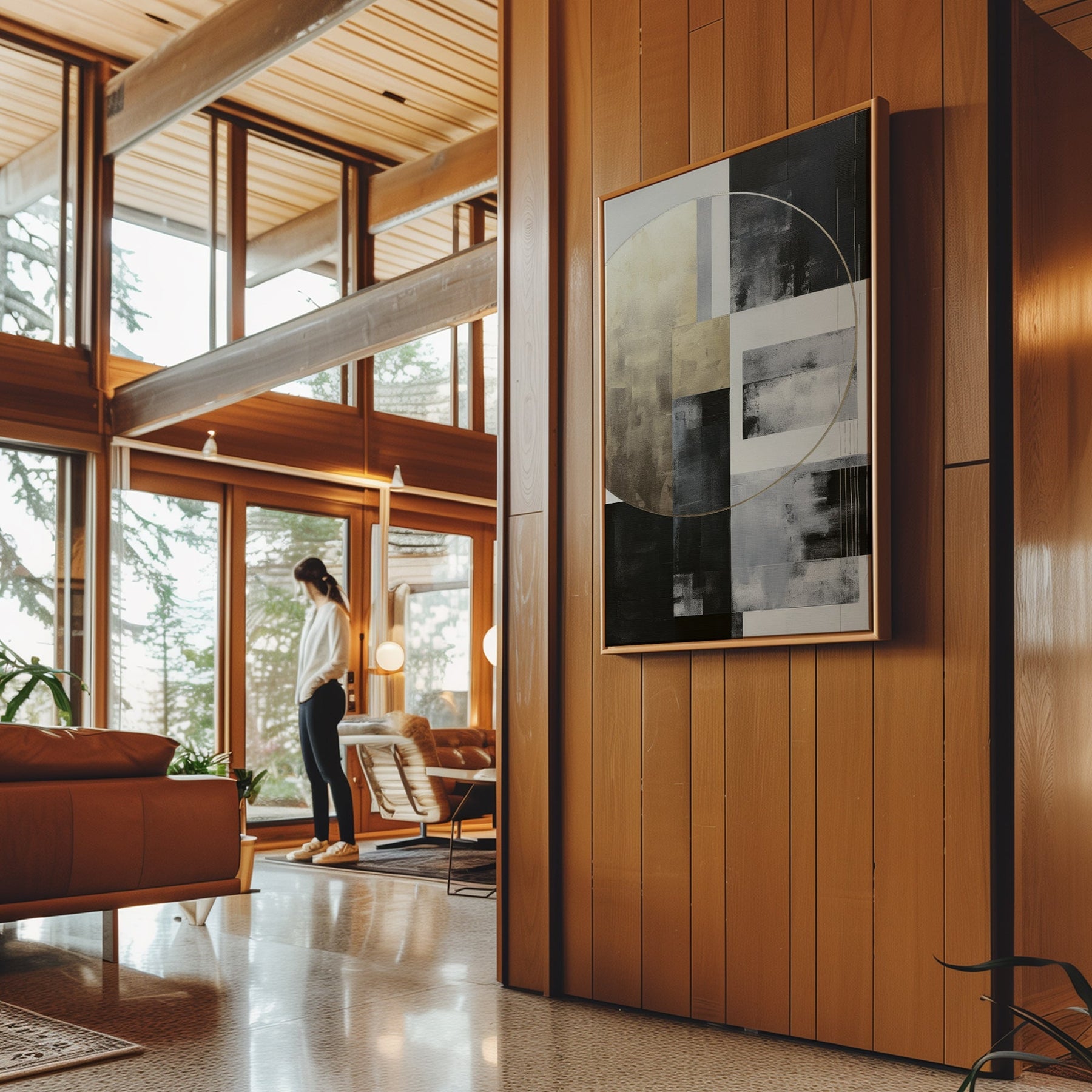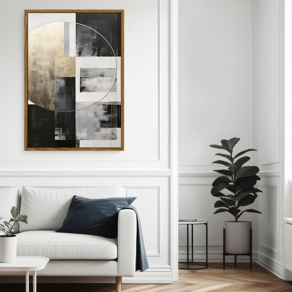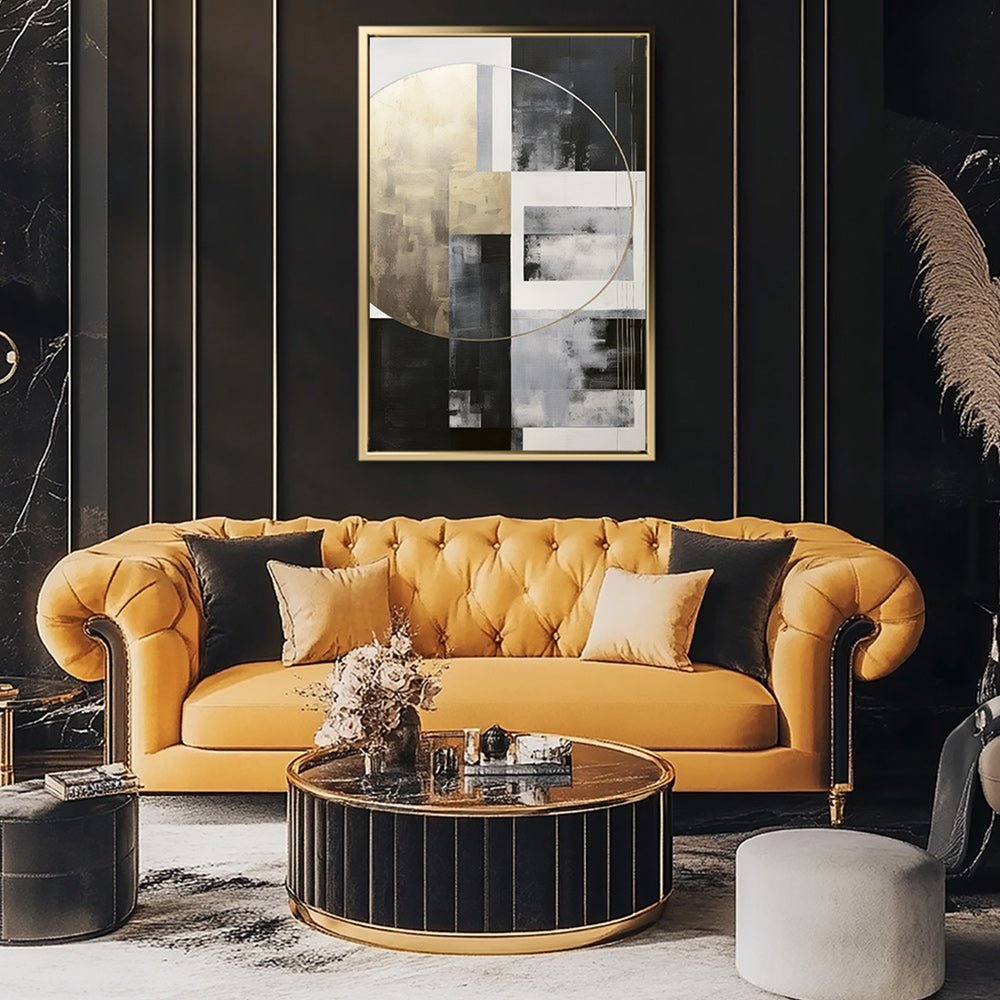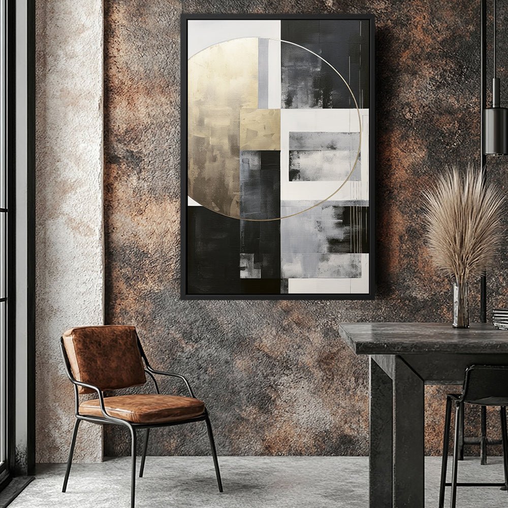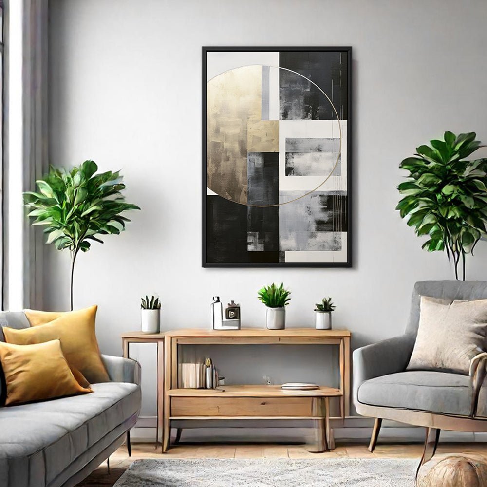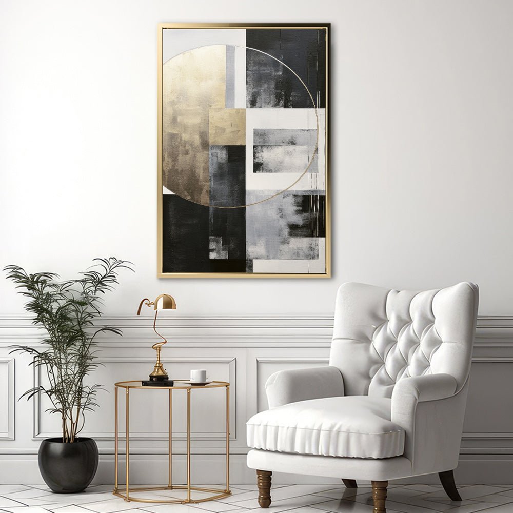 Canvas Wall Art Stretched Over Wooden Frame with Floating Frame and Gold Circle Painting CV4159