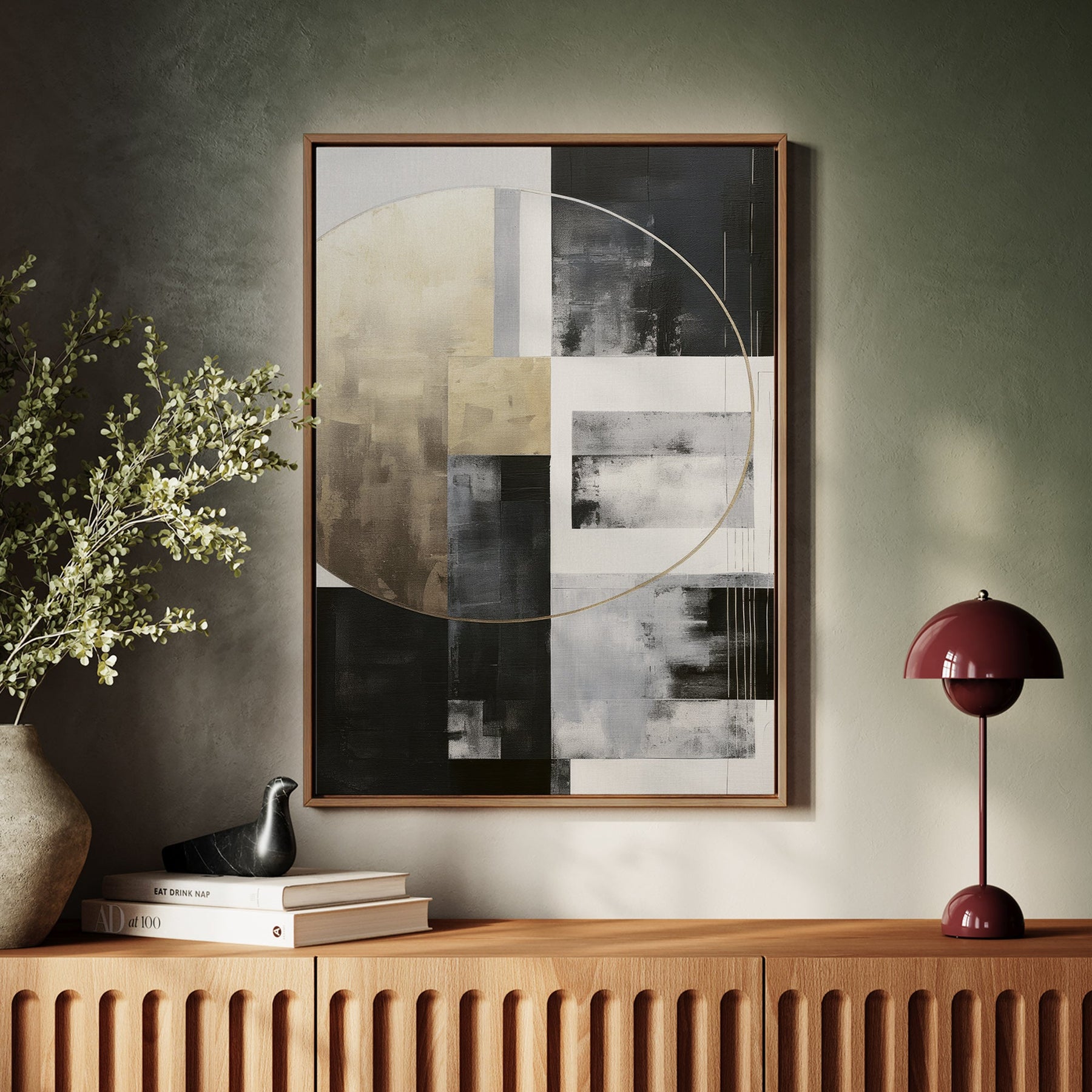 Canvas Wall Art Stretched Over Wooden Frame with Floating Frame and Gold Circle Painting CV4159Paintings & Pictures