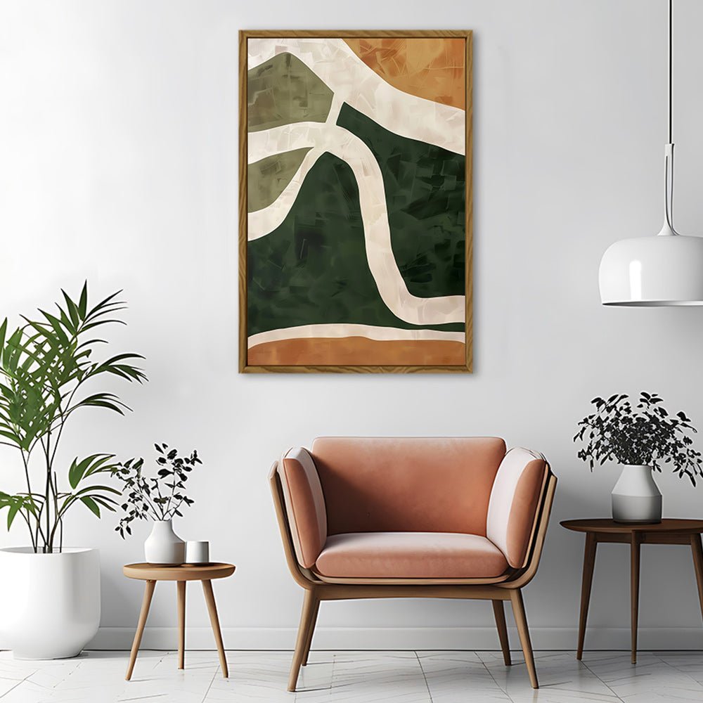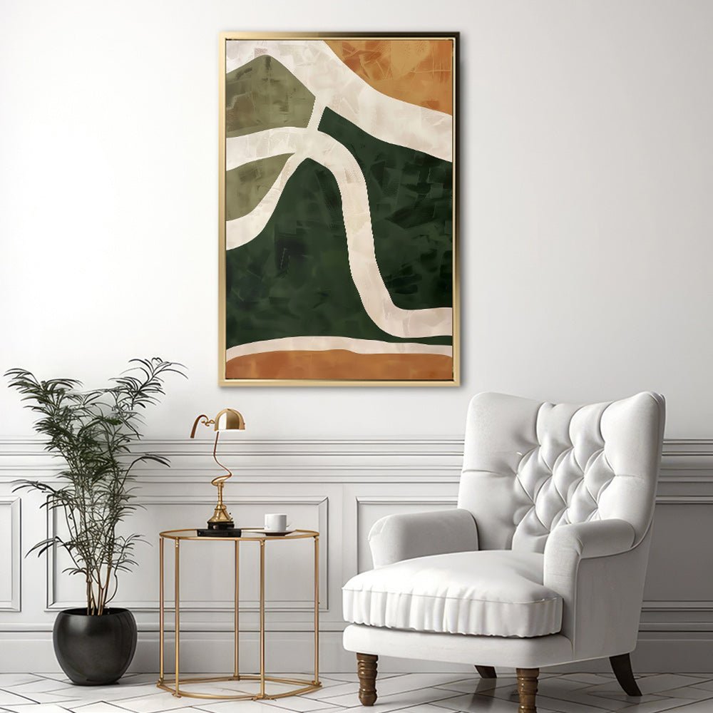 Canvas Wall Art Stretched Over Wooden Frame with Floating Frame and Green Road Abstract Painting CV4181