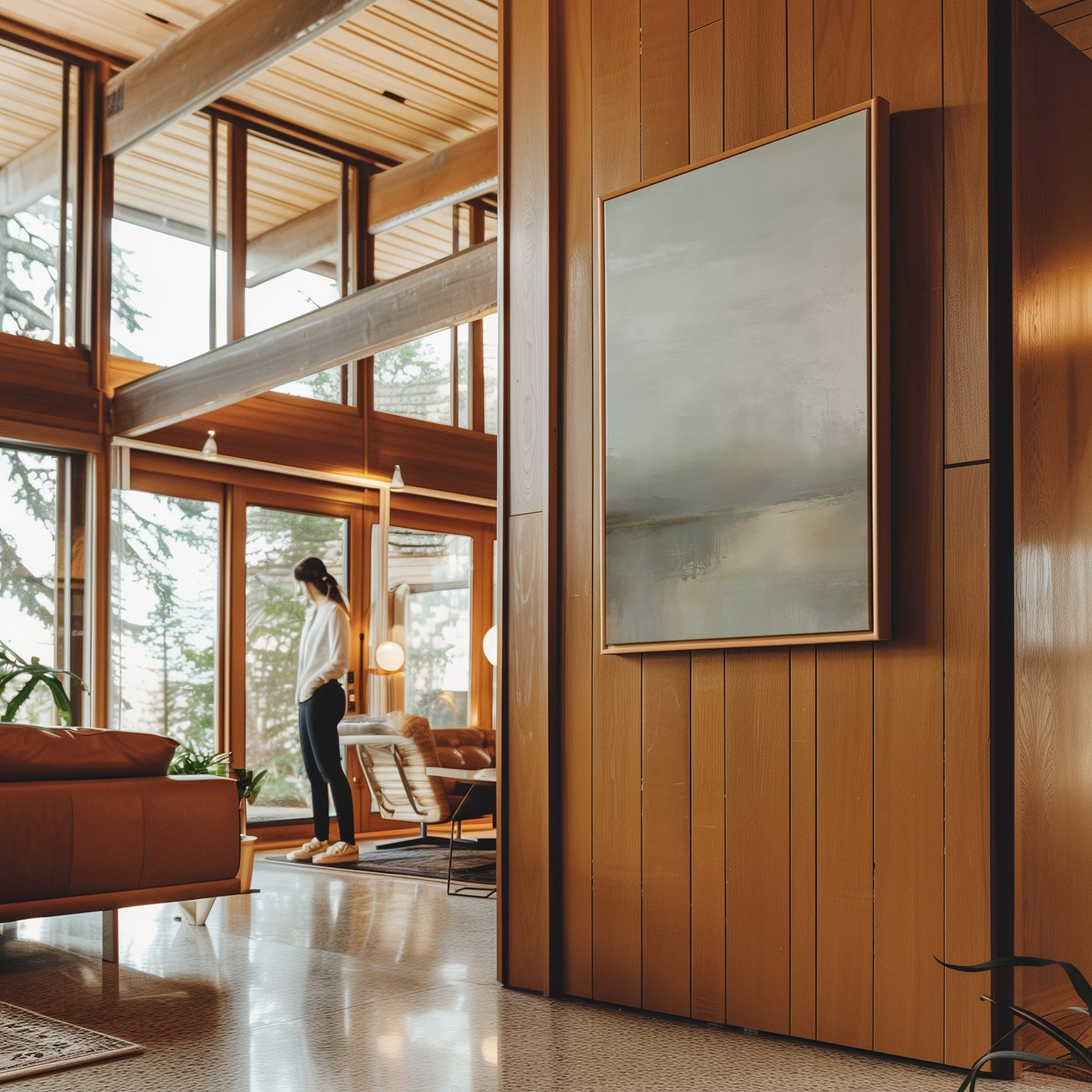 Canvas Wall Art Stretched Over Wooden Frame with Floating Frame and Sunrise On The Lake Painting CV4248