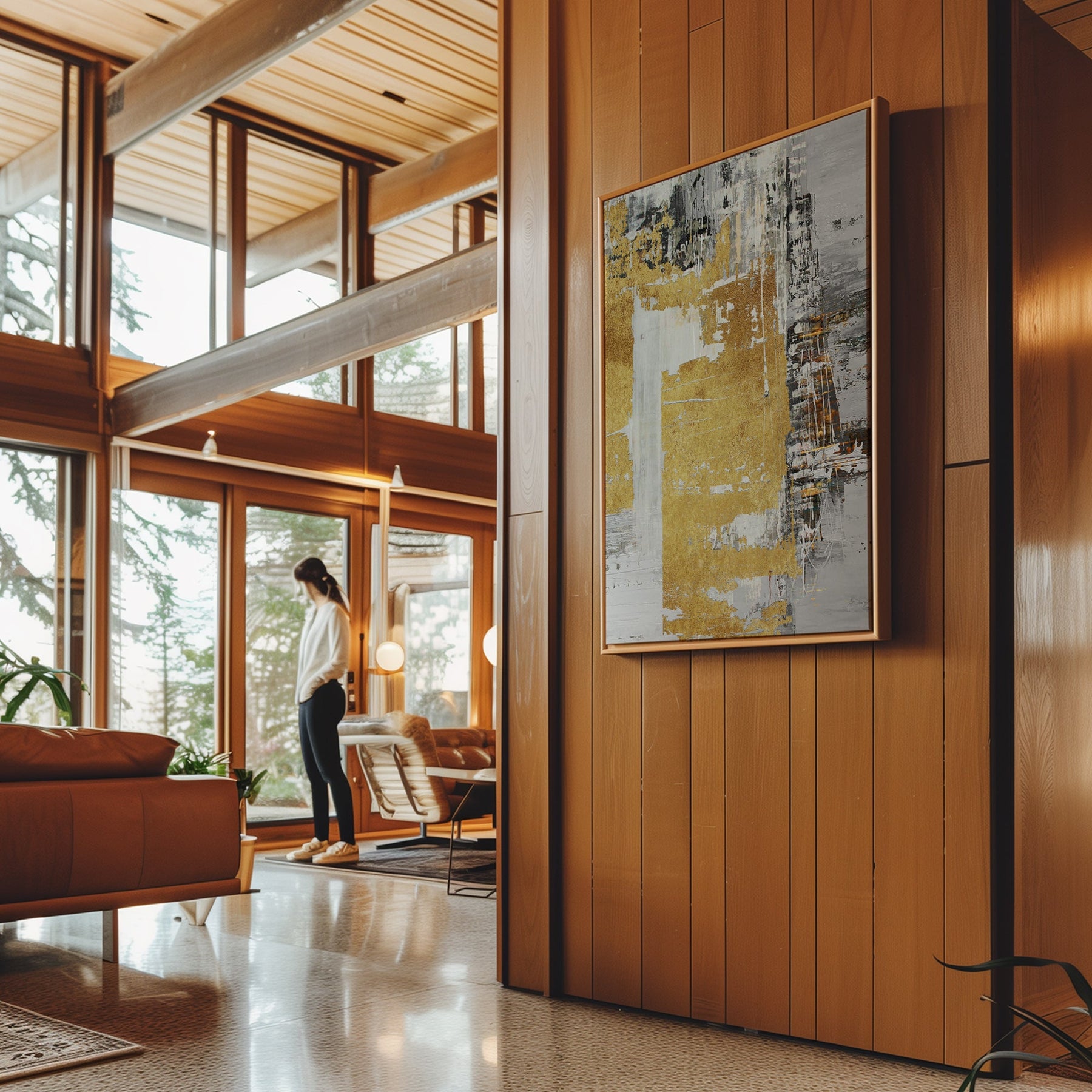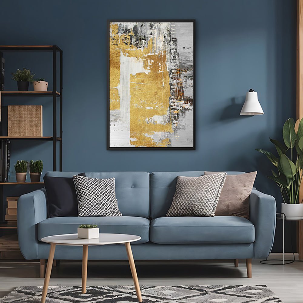 Canvas Wall Art Stretched Over Wooden Frame with Floating Frame and Touch Of Gold Abstract Painting CV4254