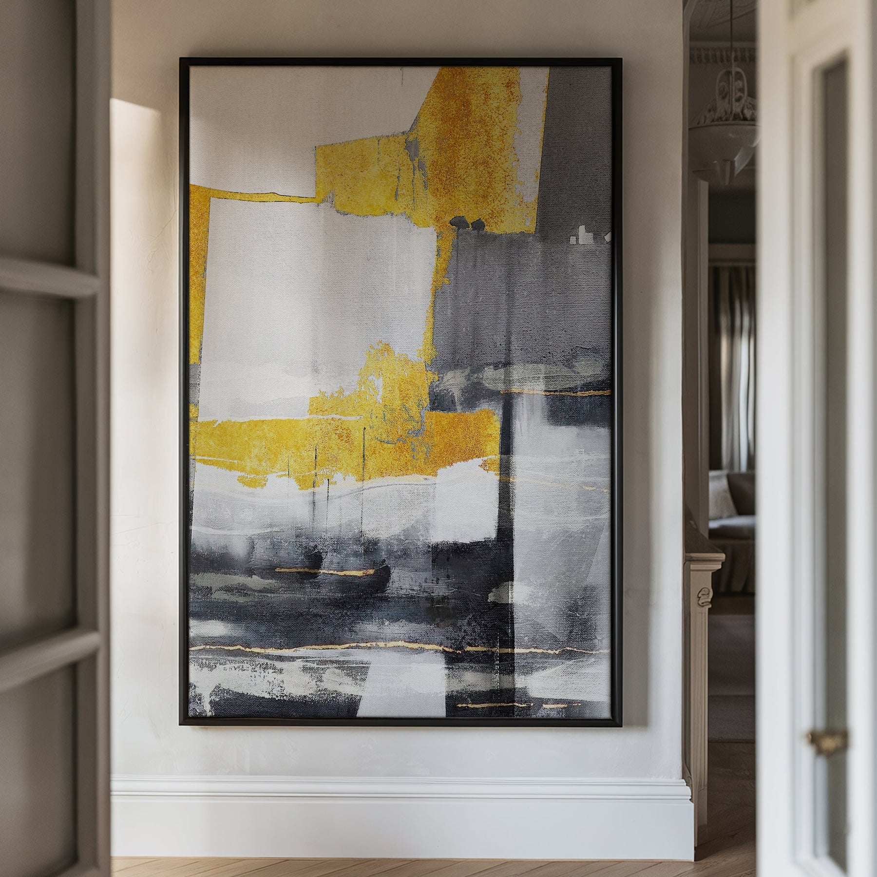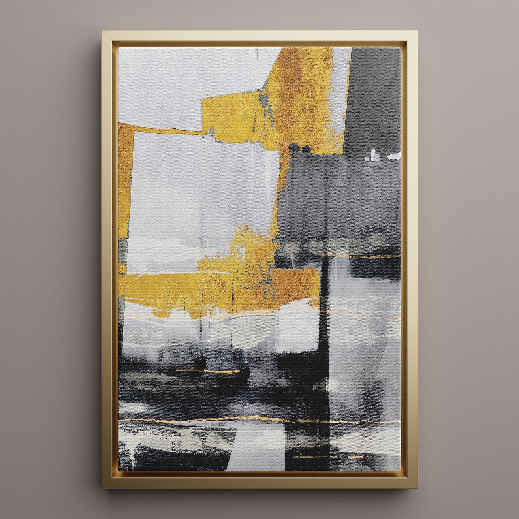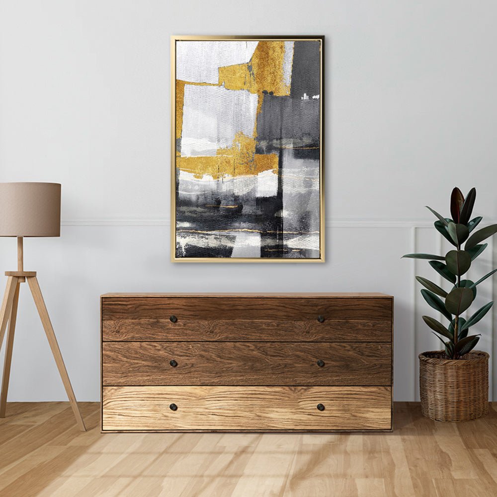 Canvas Wall Art Stretched Over Wooden Frame with Floating Frame and Touch Of Gold Abstract Painting CV4255Paintings & Pictures