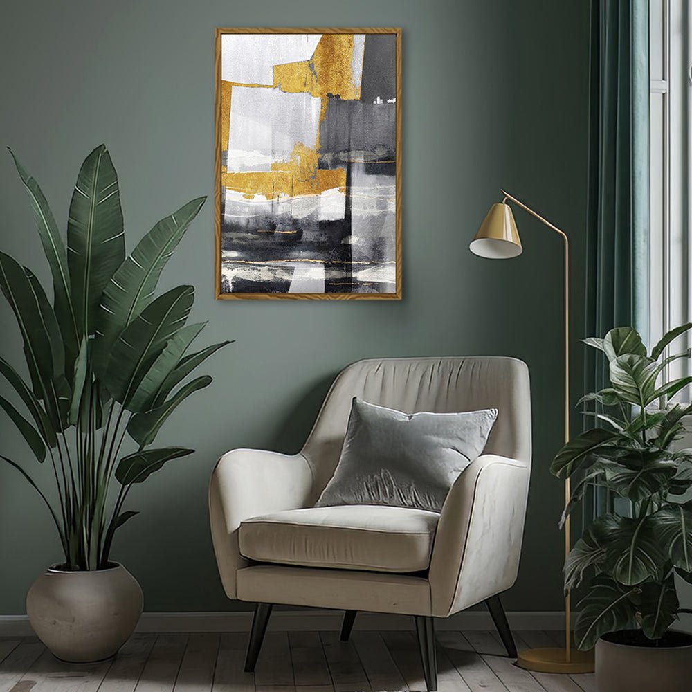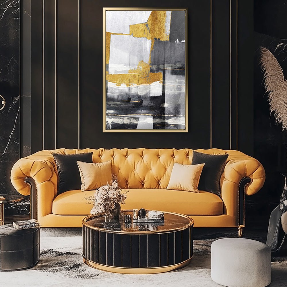 Canvas Wall Art Stretched Over Wooden Frame with Floating Frame and Touch Of Gold Abstract Painting CV4255