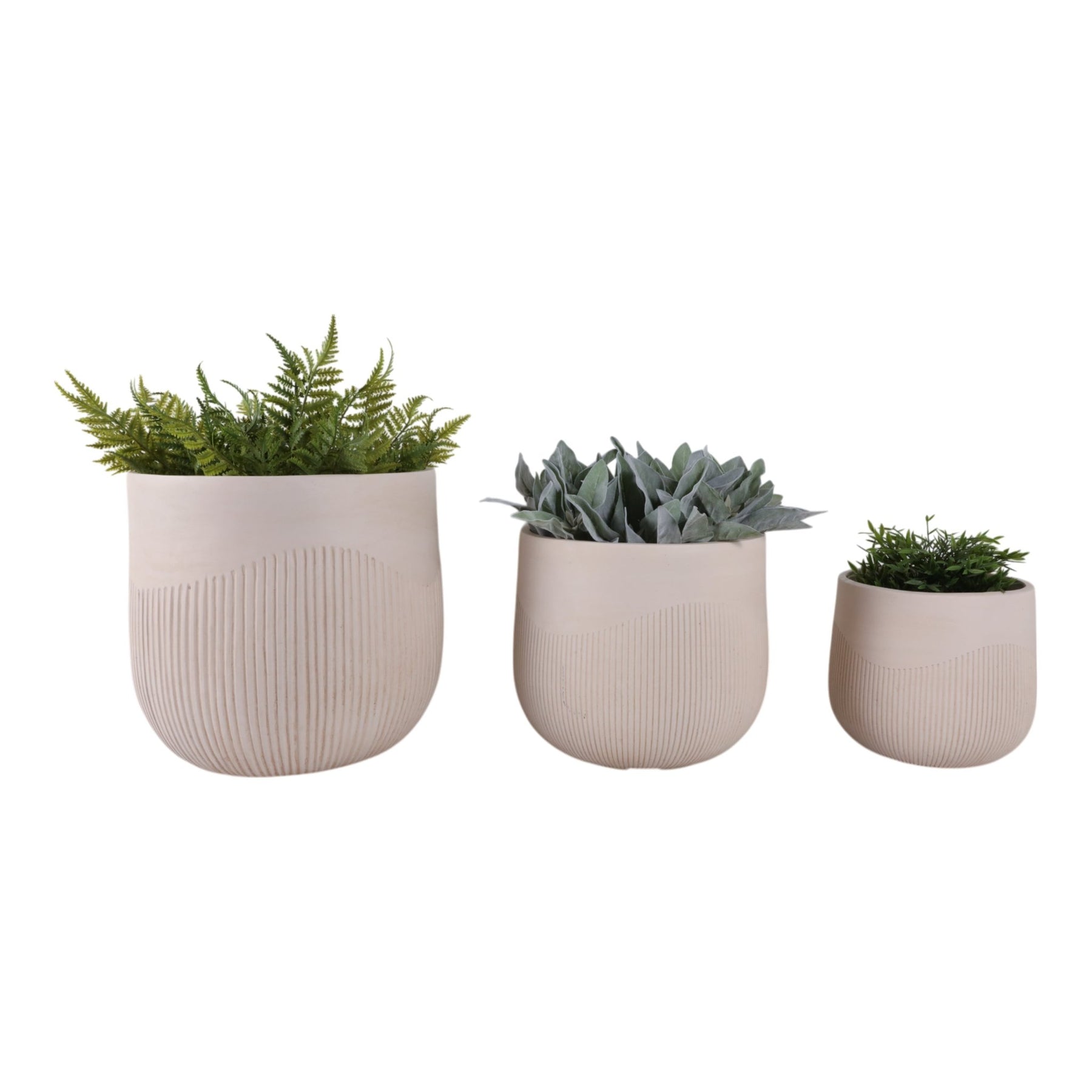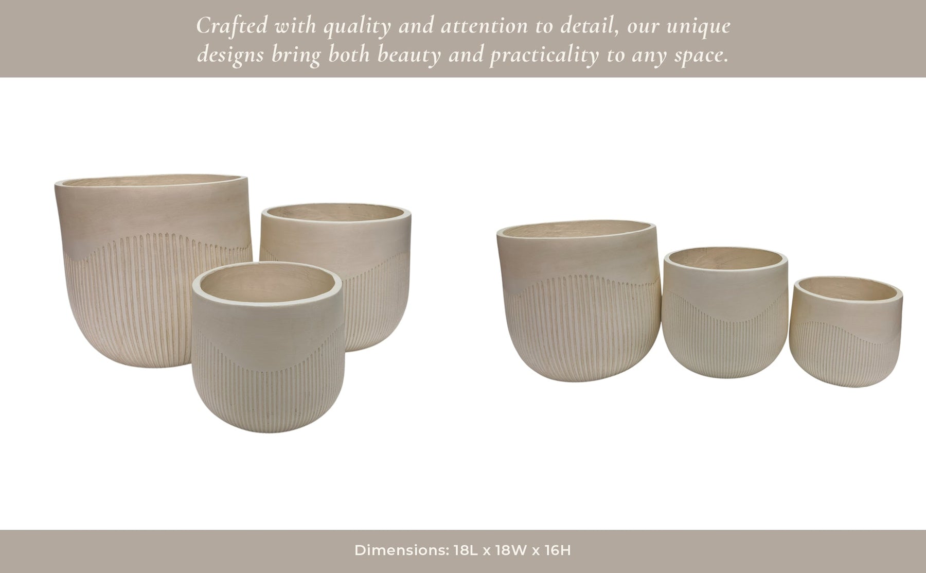 S/3 11/14/18" Resin Planters With Wavy Ribbing, Iv
