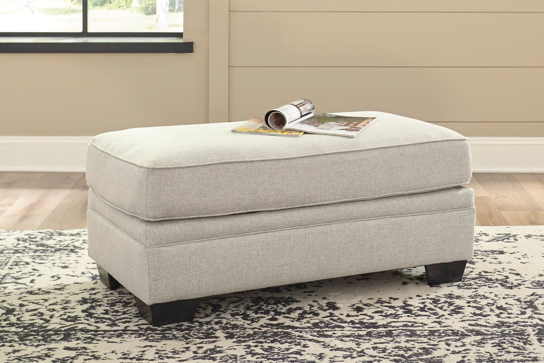 We can’t wait to see the look of comfort on your face when you kick up your heels on this ottoman. Its plush cushions are covered in linen weave chenille for an incredibly soft hand. You’re going to love elevating your feet on the ottoman's extended surface, which offers lots of room to spread out or show off a tray of decor. And with a neutral hue, it complements your home effortlessly.