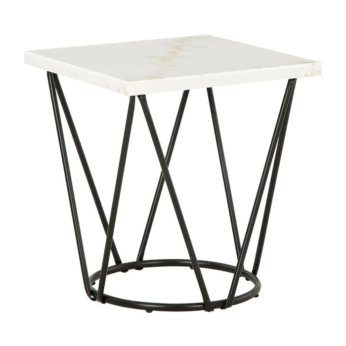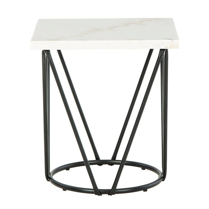 Sleekly complete your contemporary decor with the Vancent end table. Its marble top is elegantly on trend, with a matte black metal frame providing streamlined support. Expertly balancing forward-thinking style and everyday function, this piece is irresistibly modern.