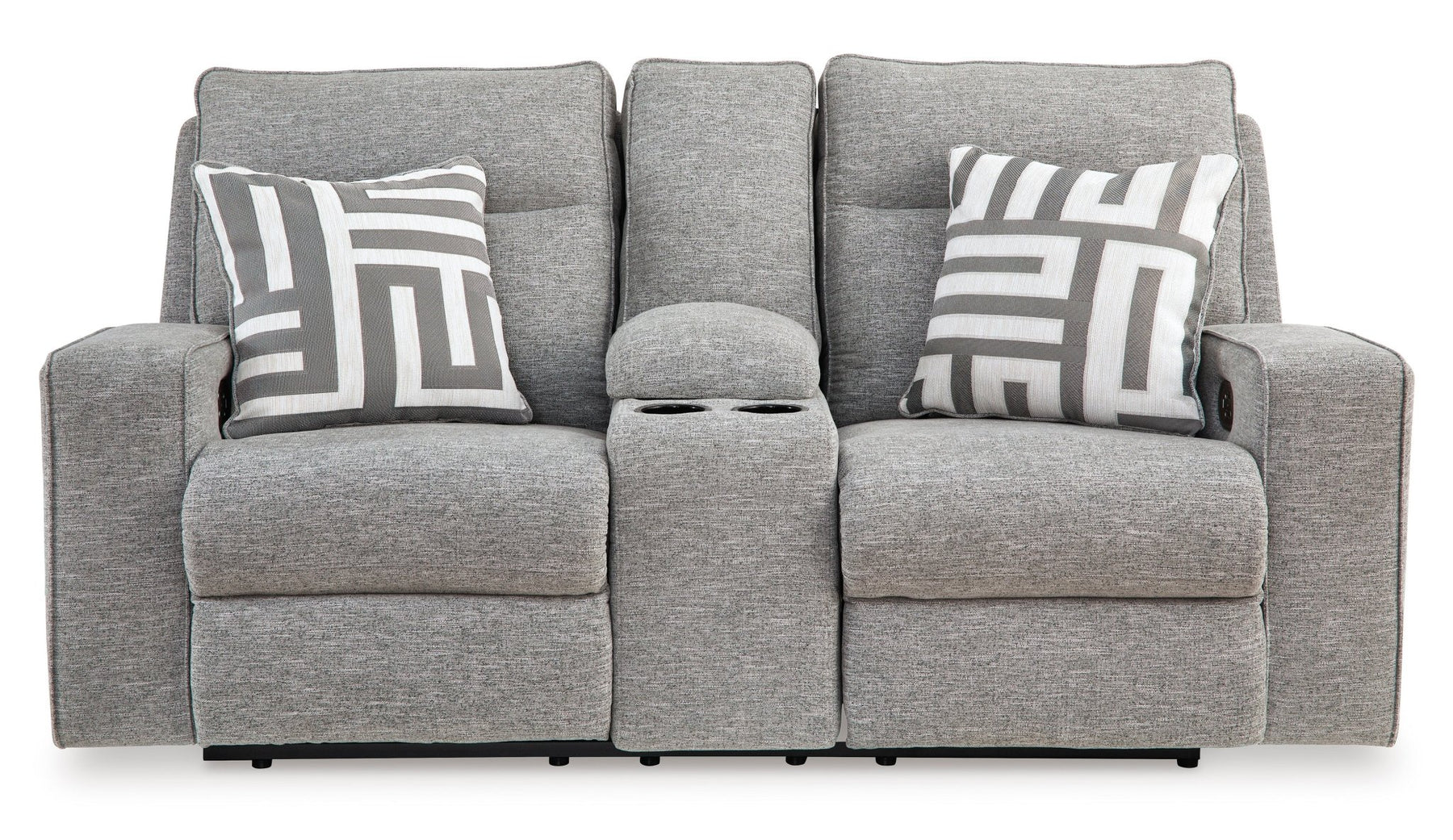 Biscoe Performance Fabric Dual Power Reclining Loveseat with Console