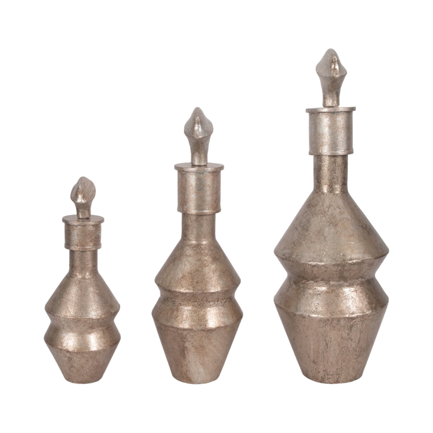 S/3 13/17/21" Comack Small Silver Bottle - Al Rugaib Furniture