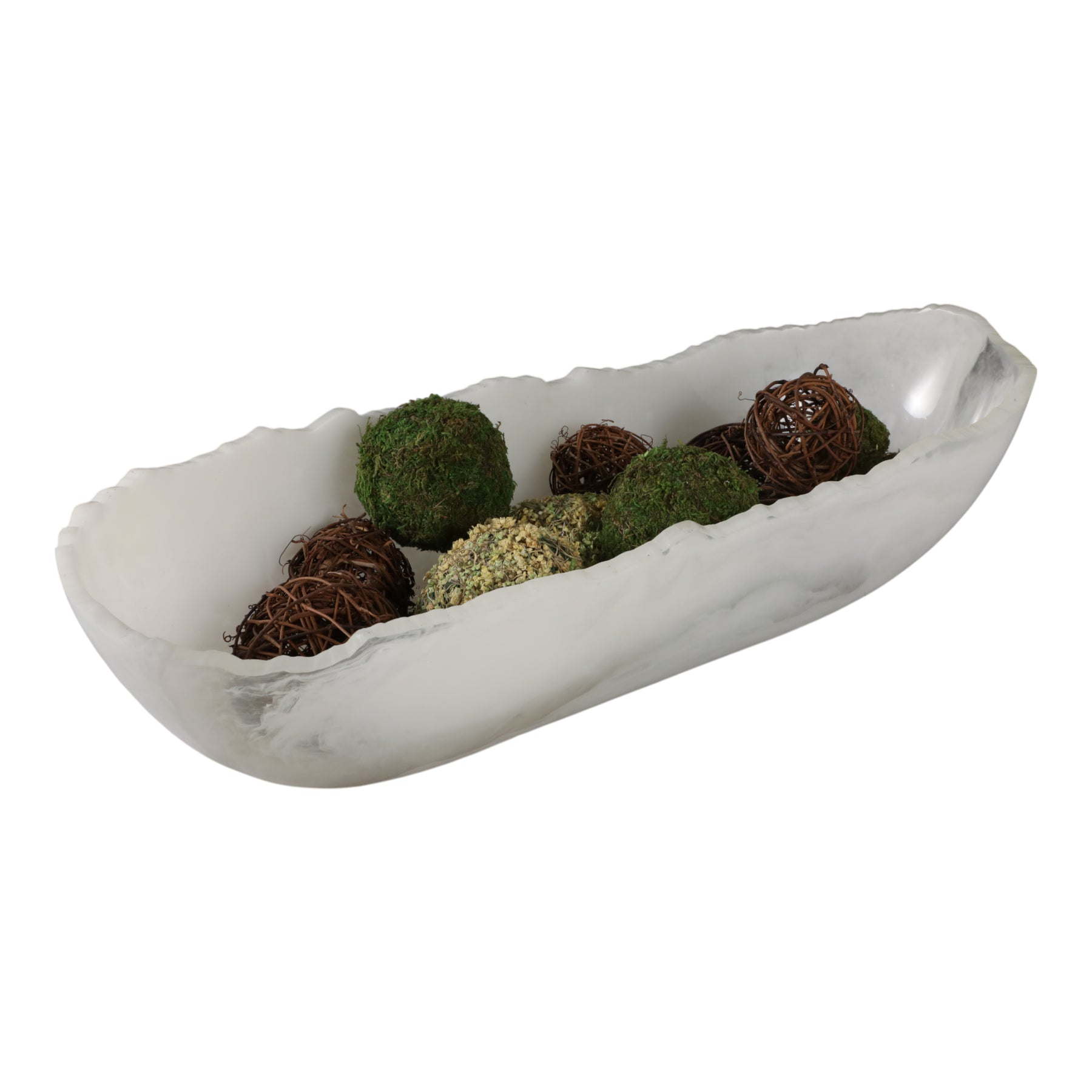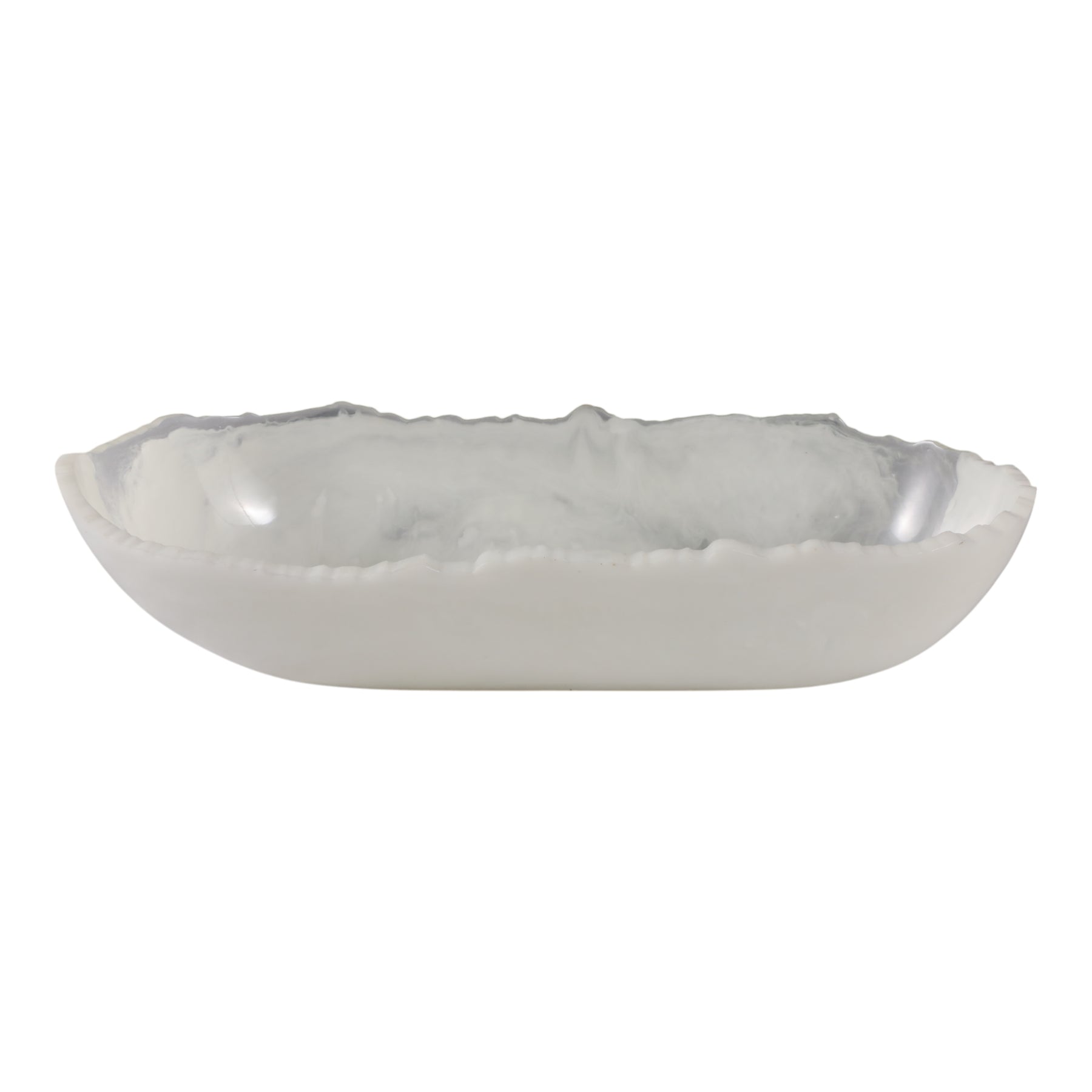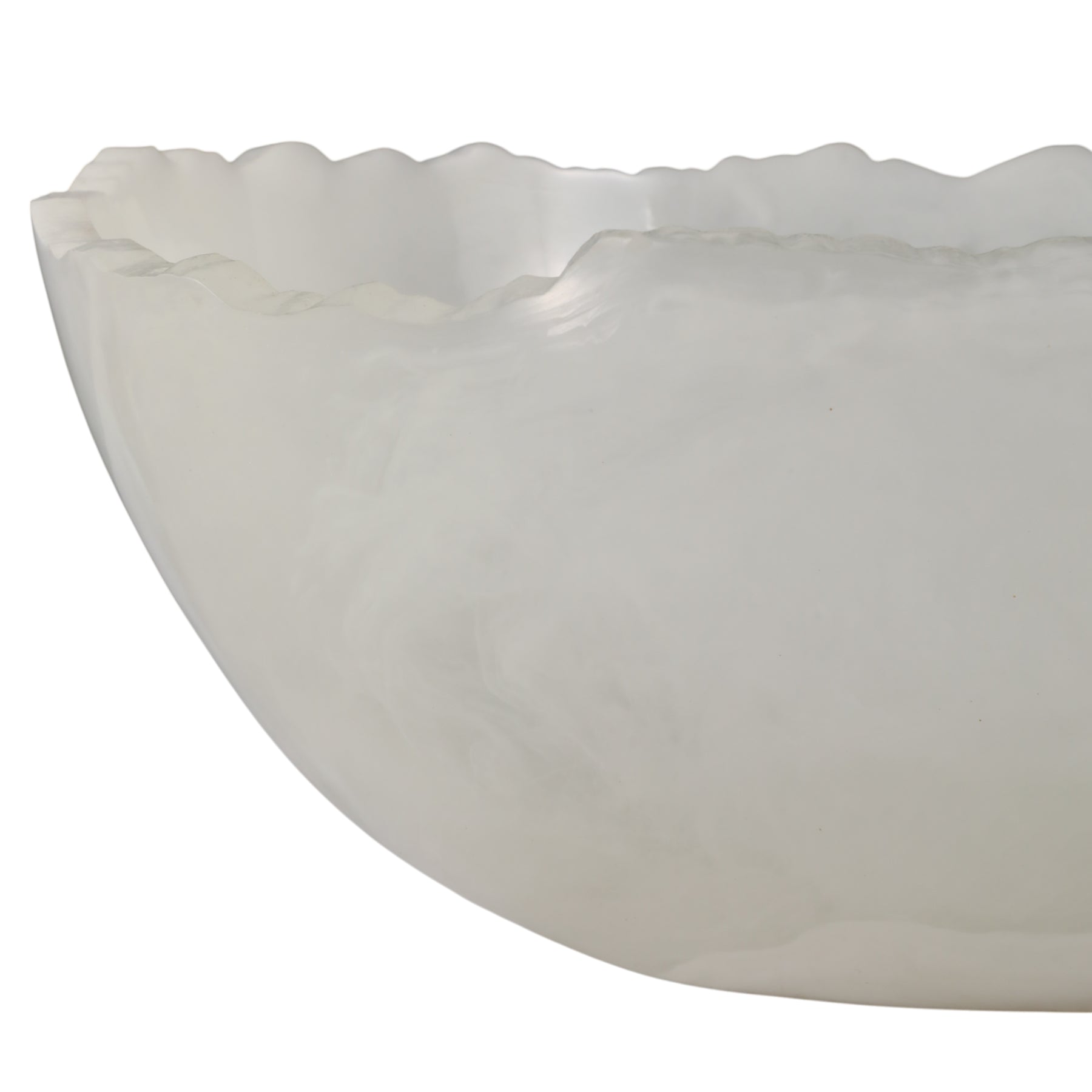 23x9" Raw Edge Marbled Resin Bowl, White - Al Rugaib Furniture