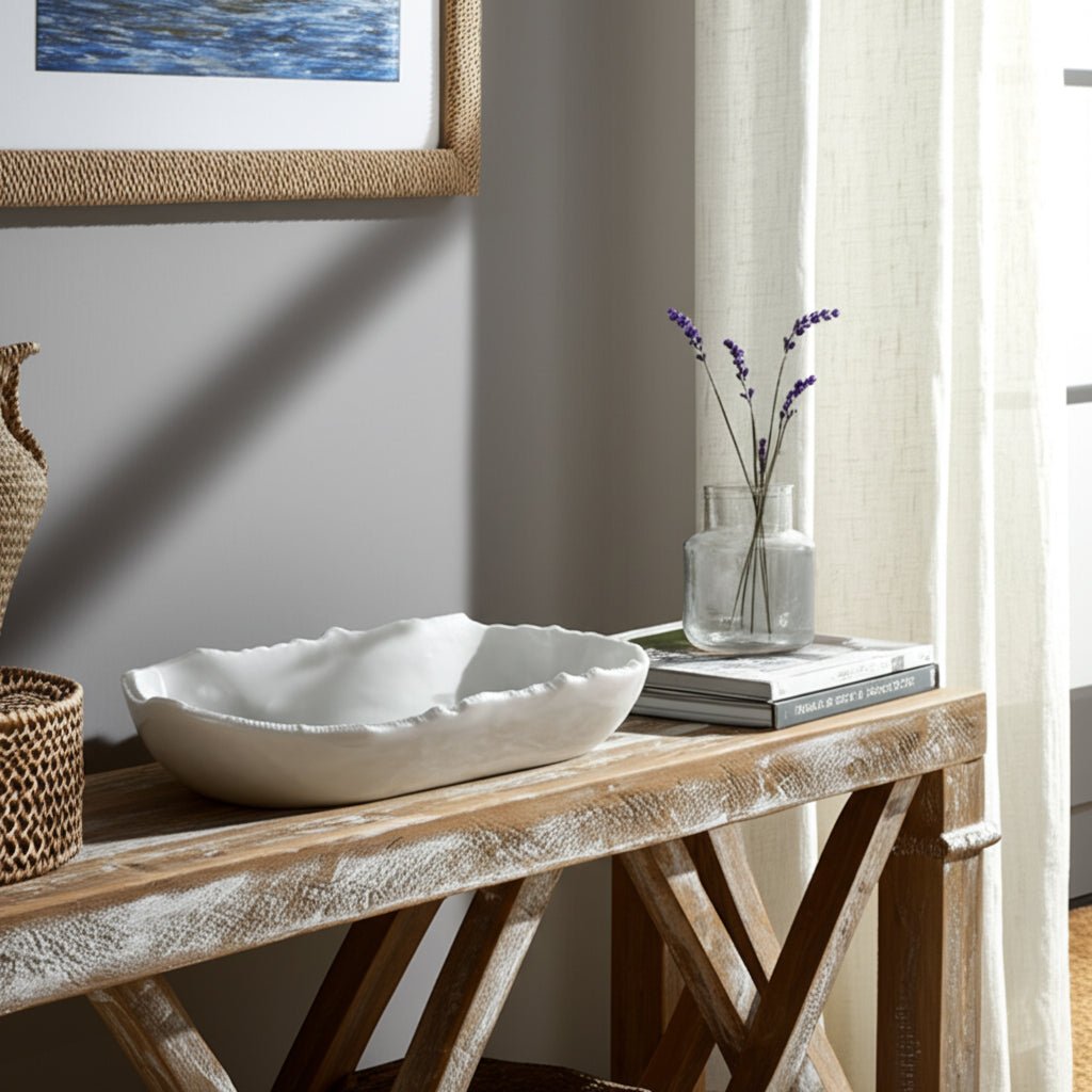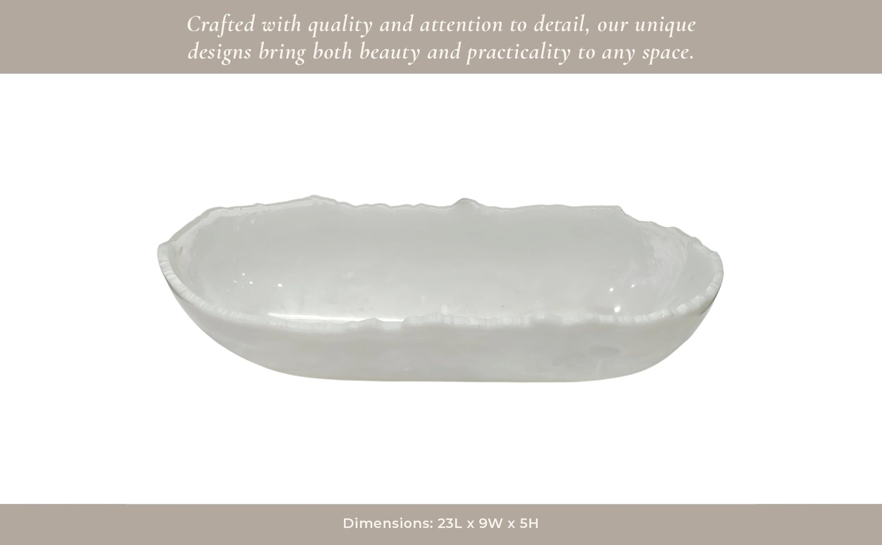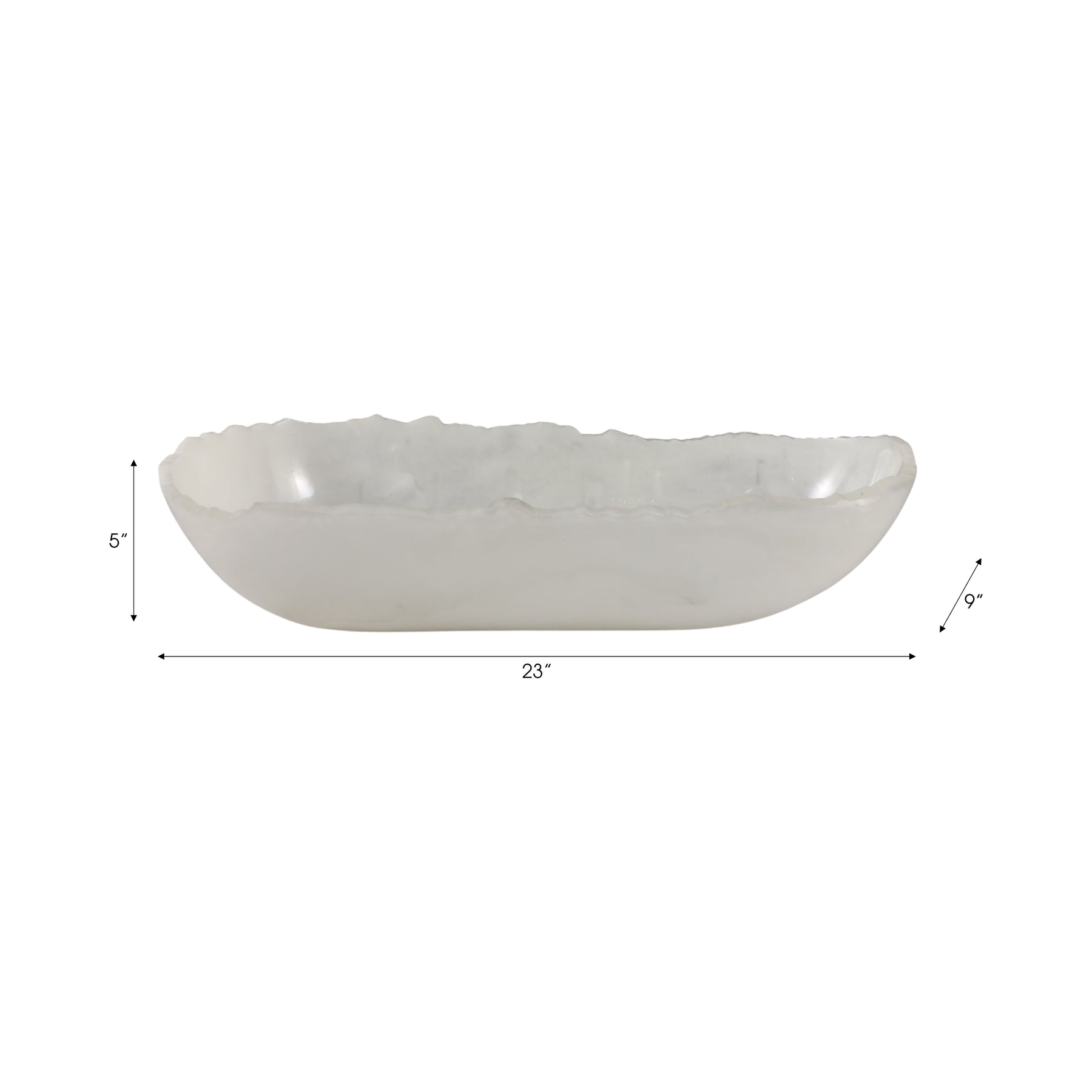 23x9" Raw Edge Marbled Resin Bowl, White - Al Rugaib Furniture