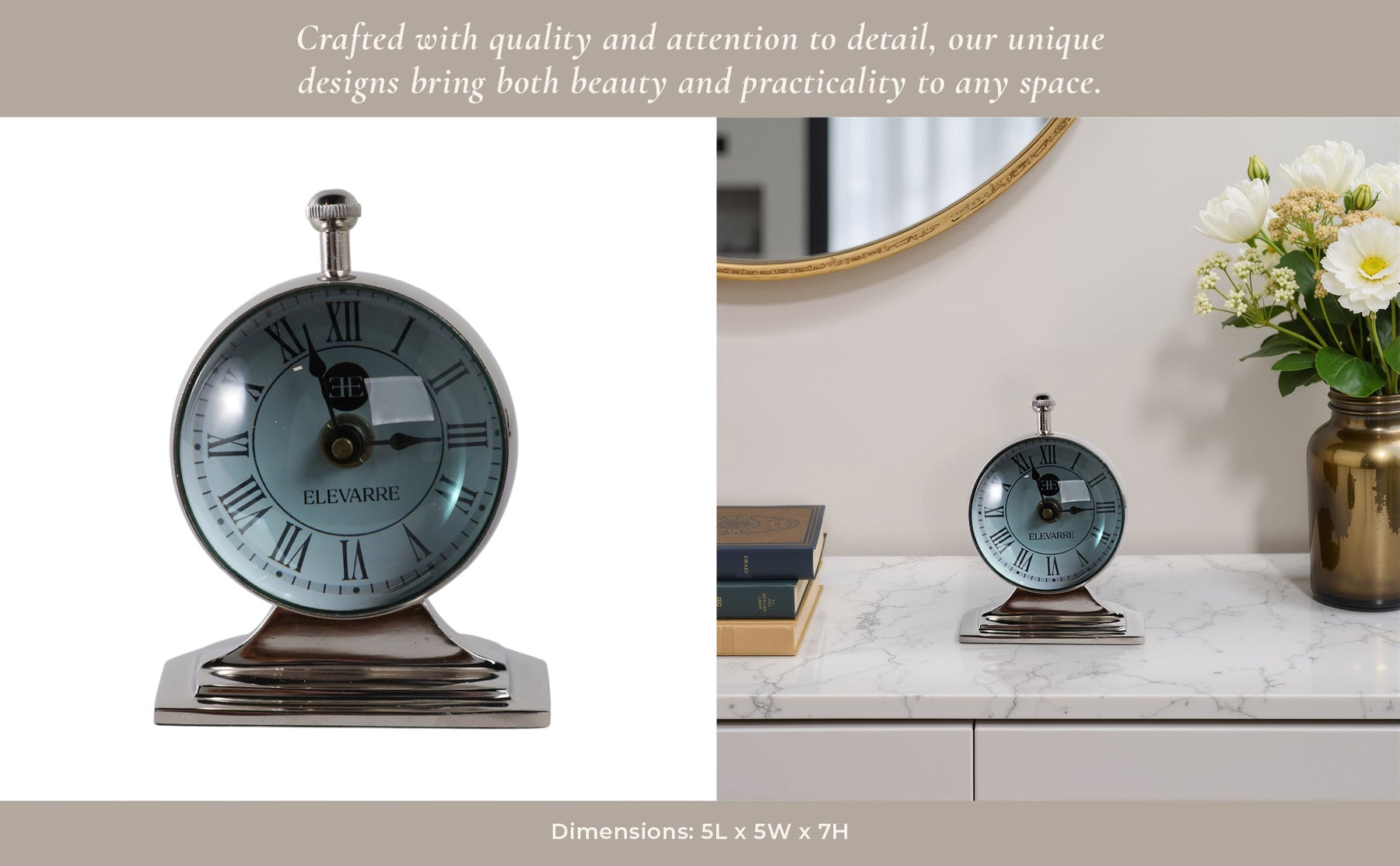 5x7 Bartoli Silver Alumnum Double Sided Desk Clock