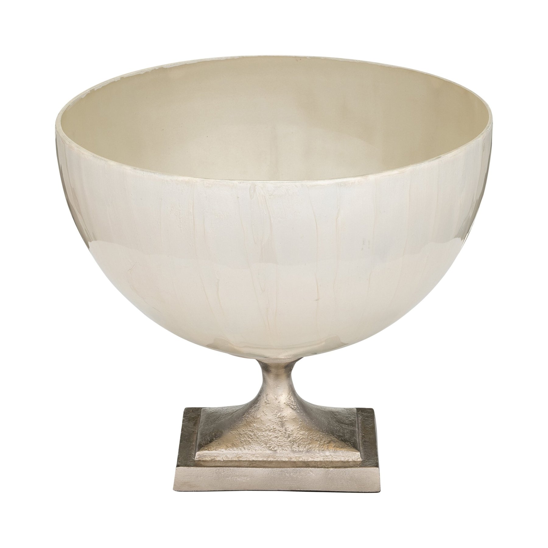 GLASS, 9" BOWL W/ METAL STAND, PEARL WHITE