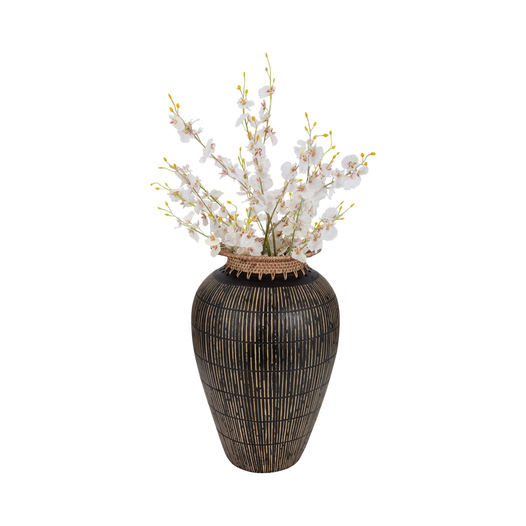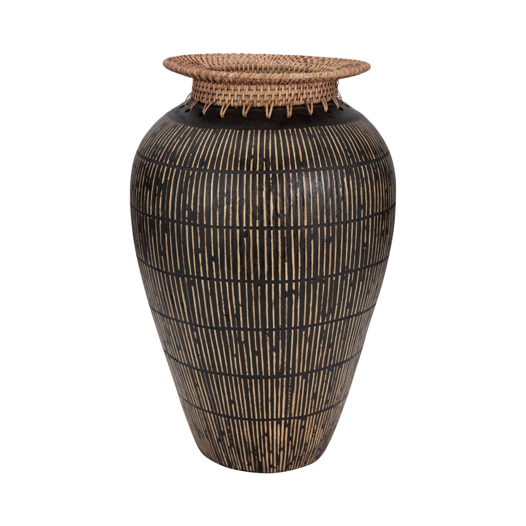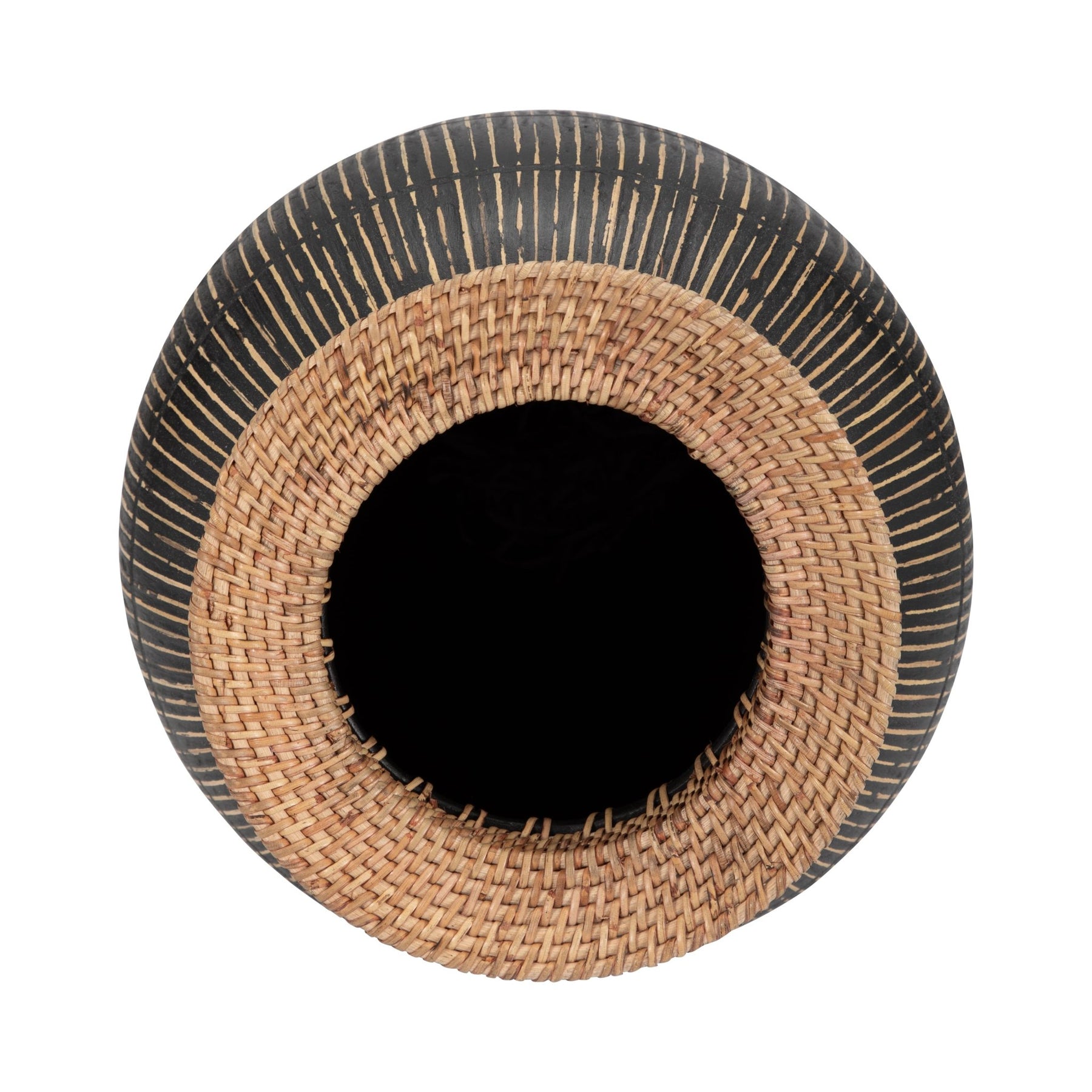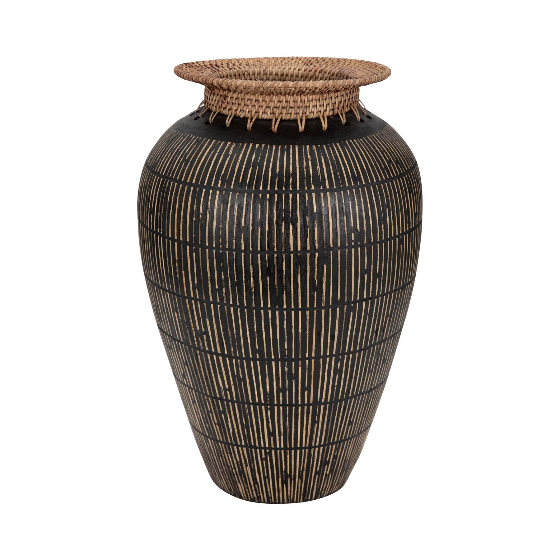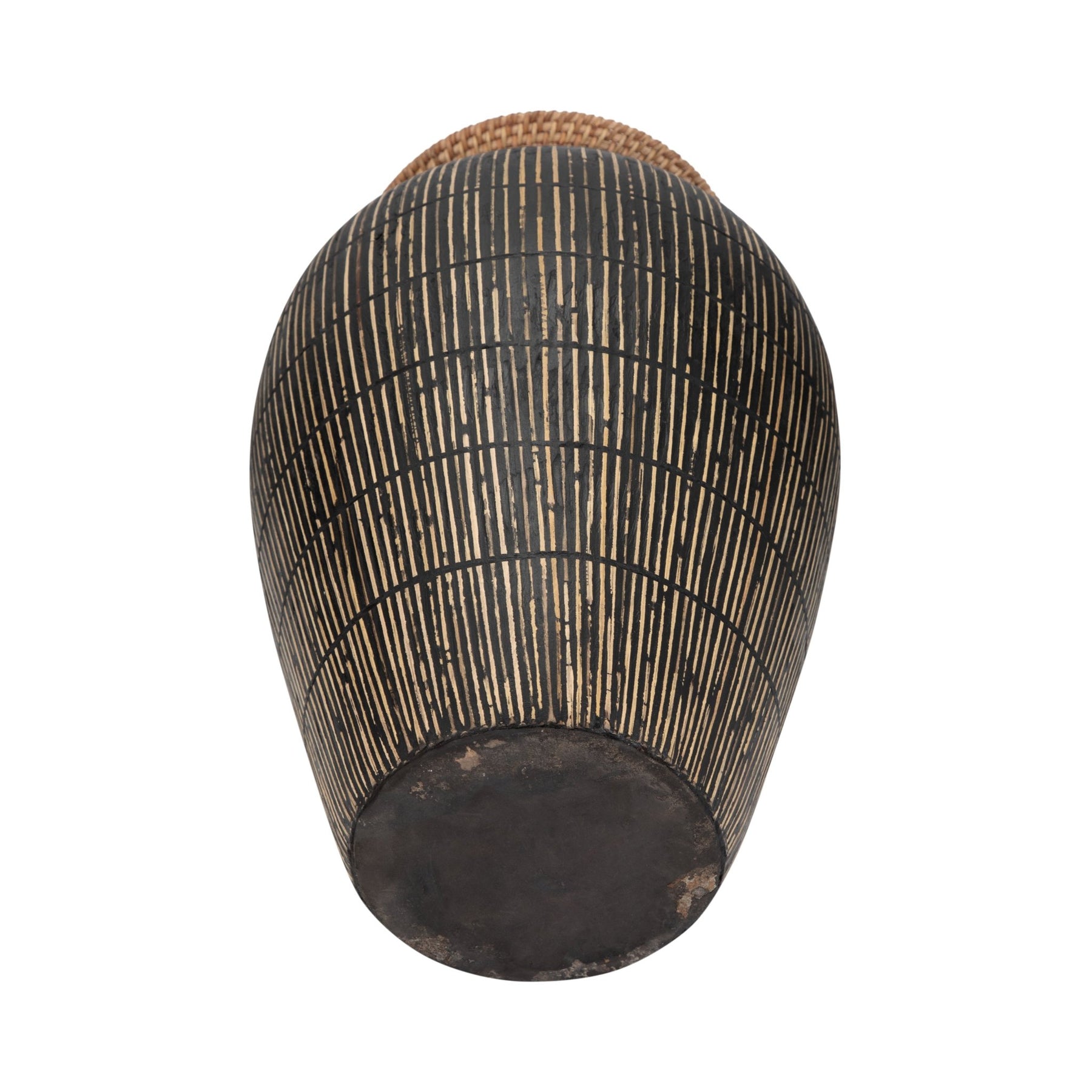 Terracotta, 19" Lines Vase W/ Woven Top, Multi - Al Rugaib Furniture