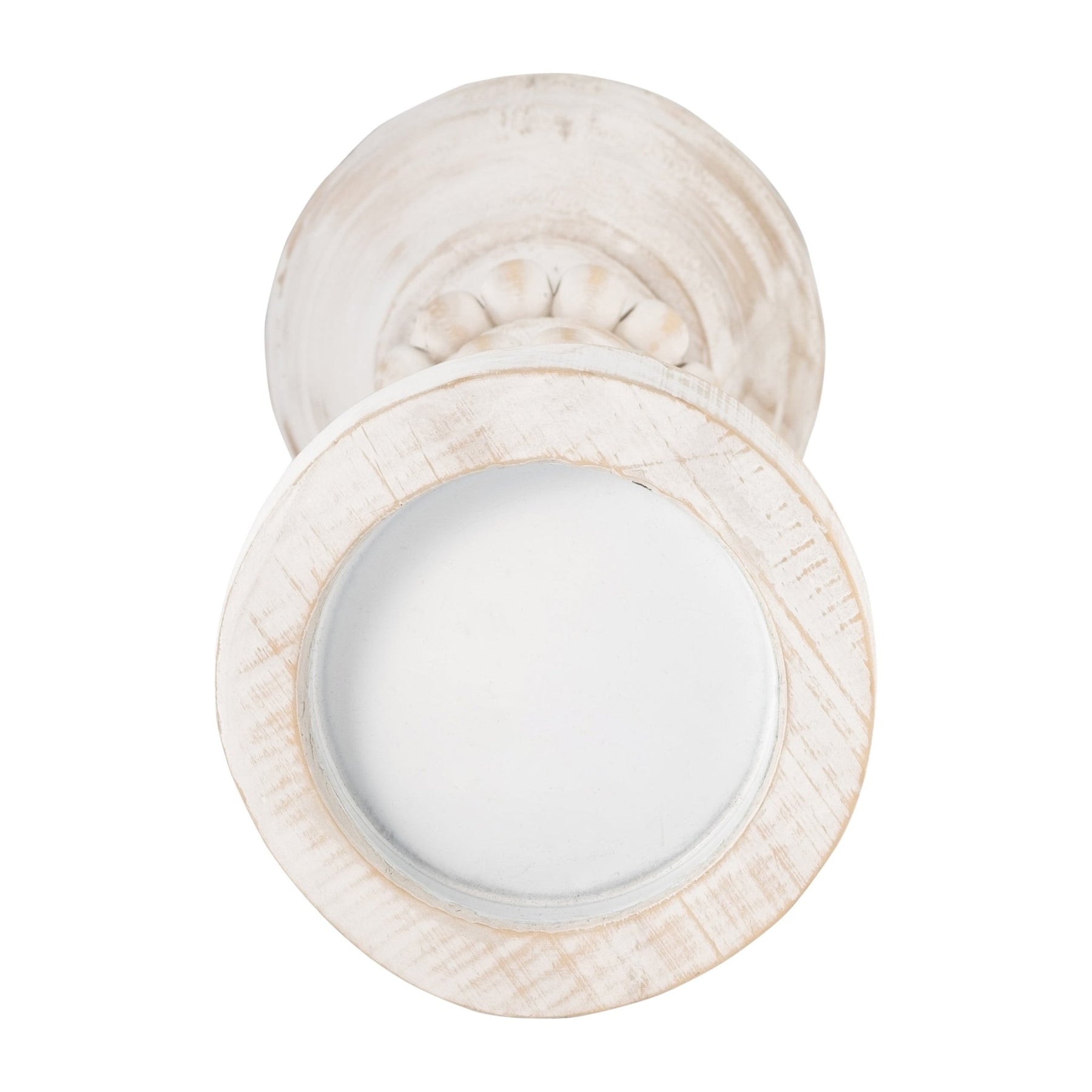 WOOD, 13" ANTIQUE STYLE CANDLE HOLDER, WHITE