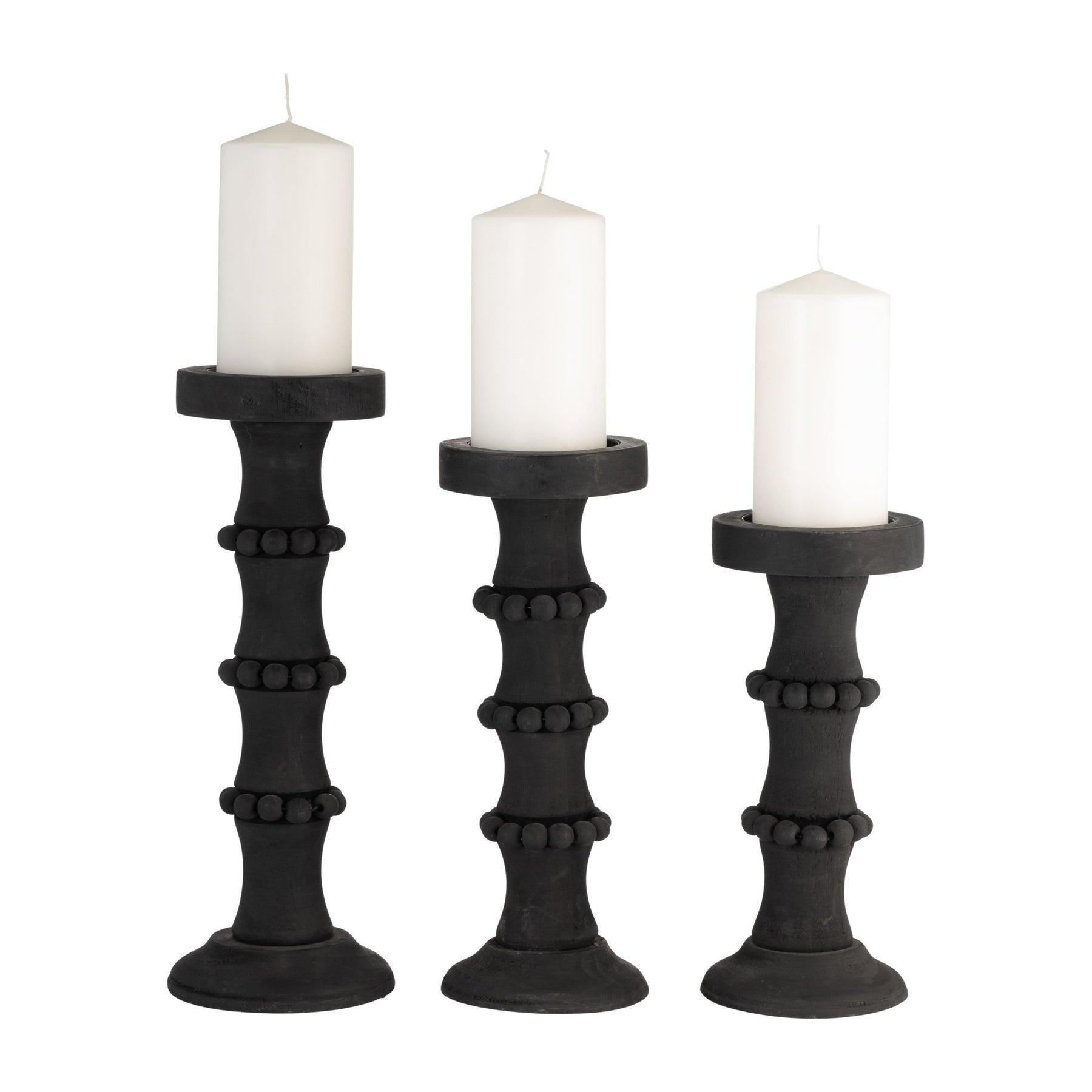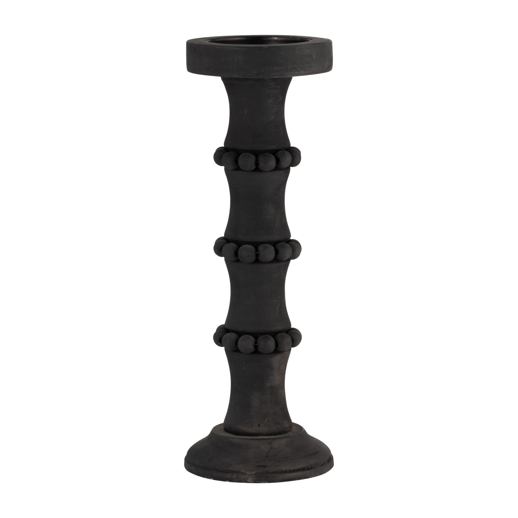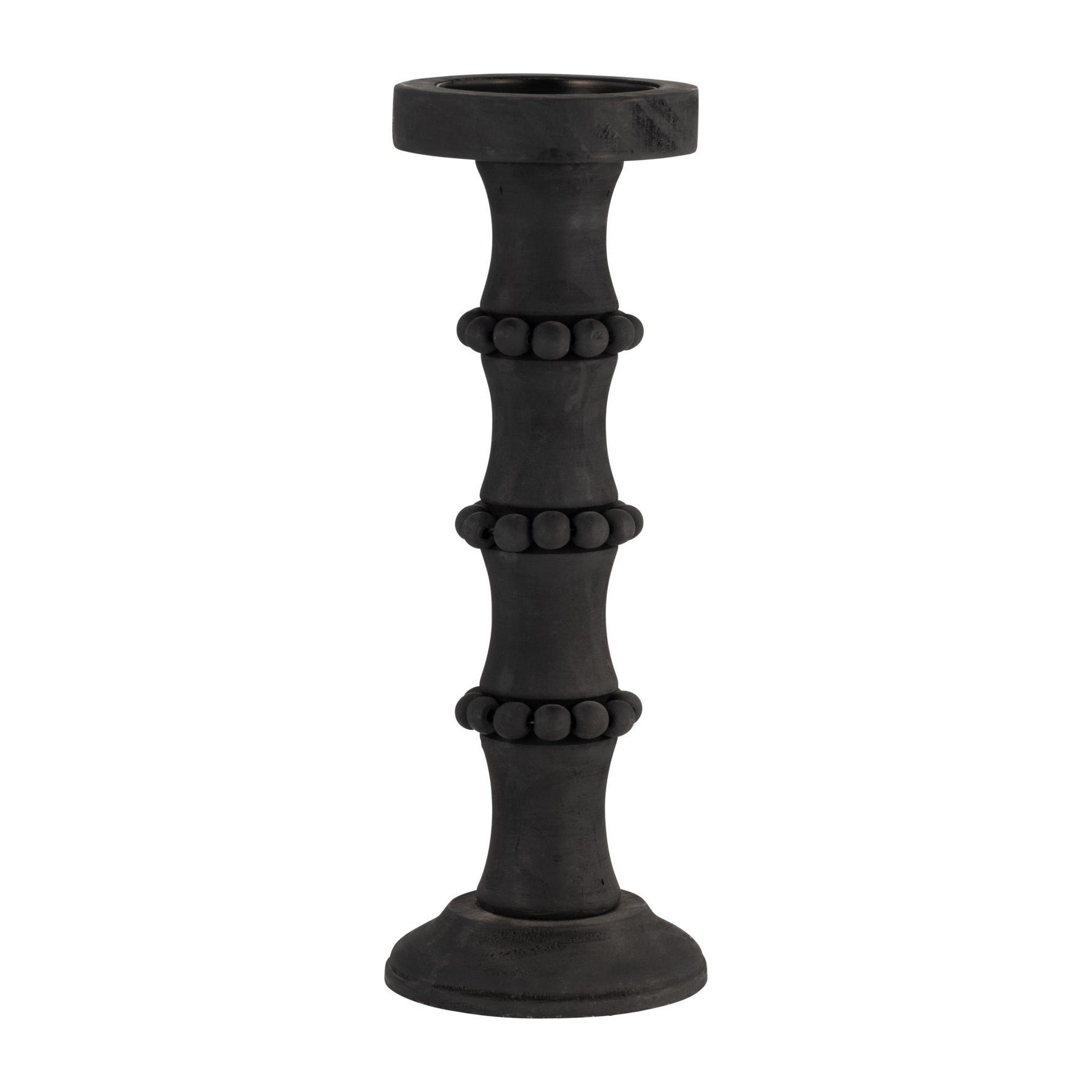 WOOD, 15" ANTIQUE STYLE CANDLE HOLDER, BLACK - Al Rugaib Furniture