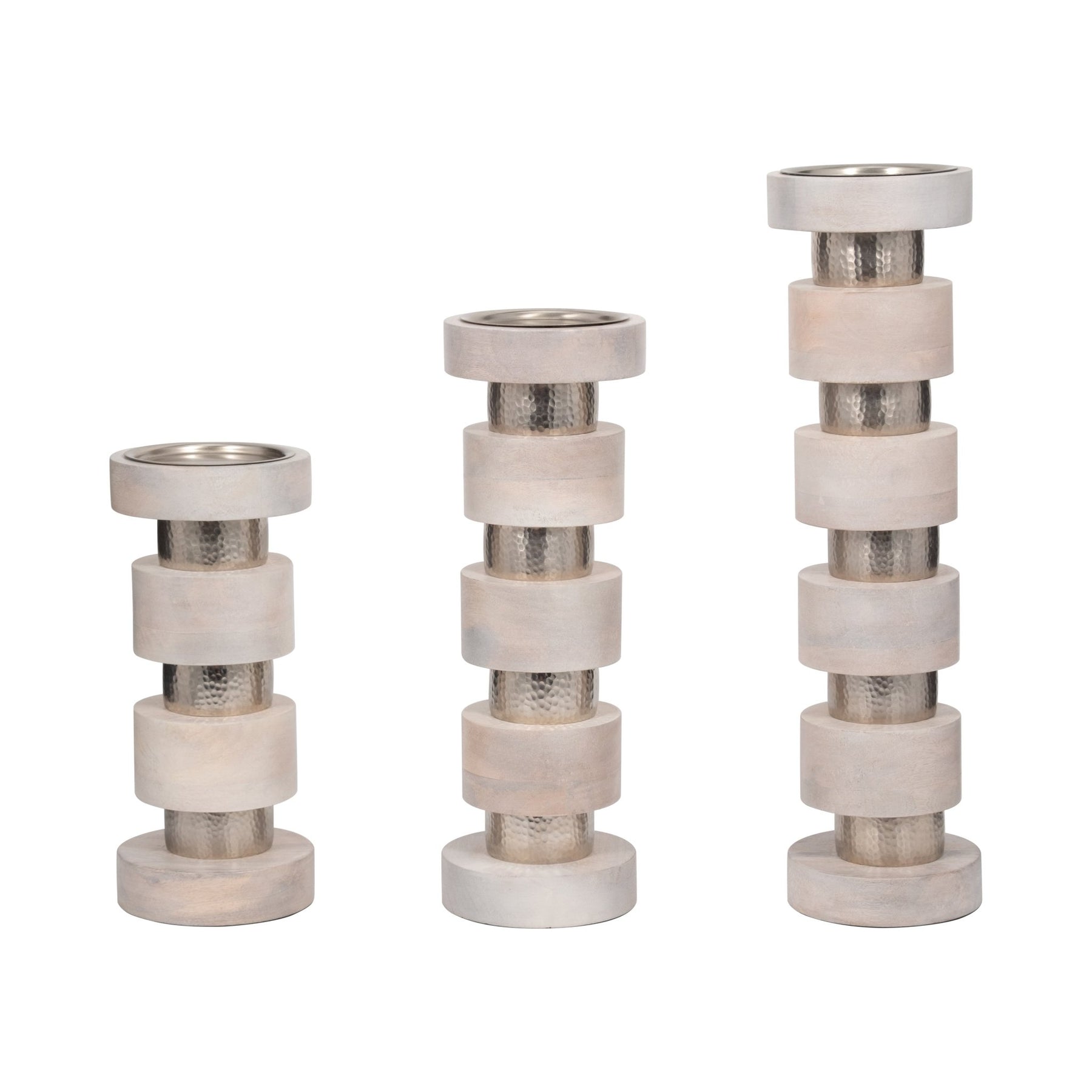 S/3 13/17/22" HOLLIS WOOD CANDLE STICKS, ANTIQUE W
