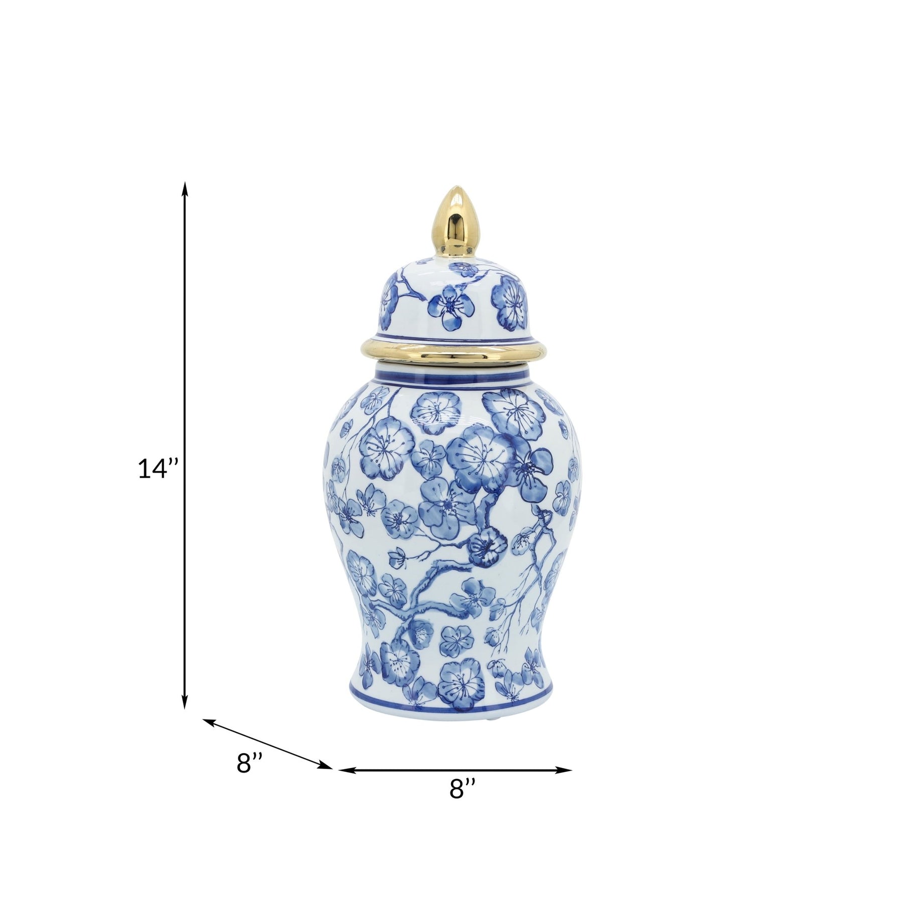 14" TEMPLE JAR W/ HIBISCUS, BLUE & WHITE - Al Rugaib Furniture