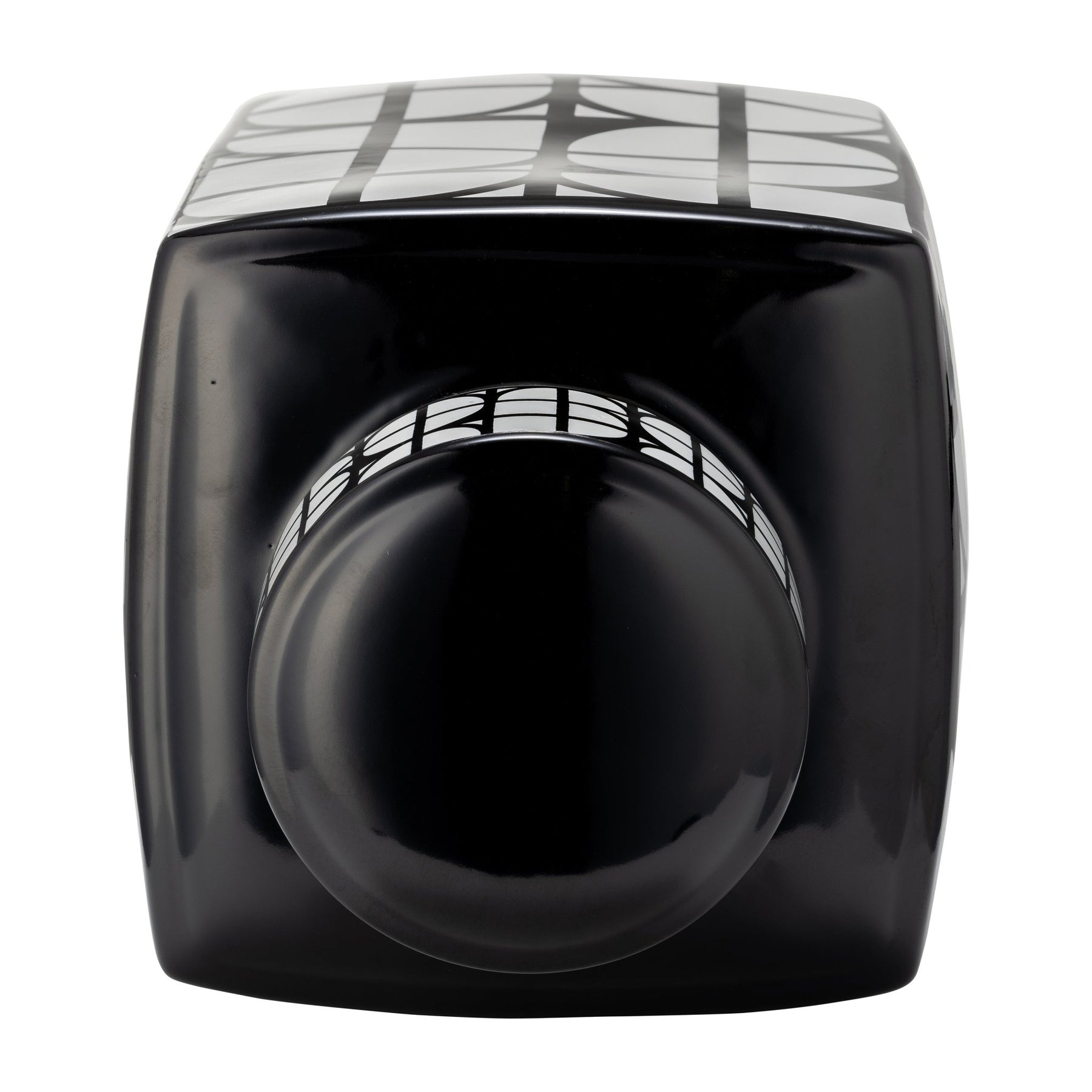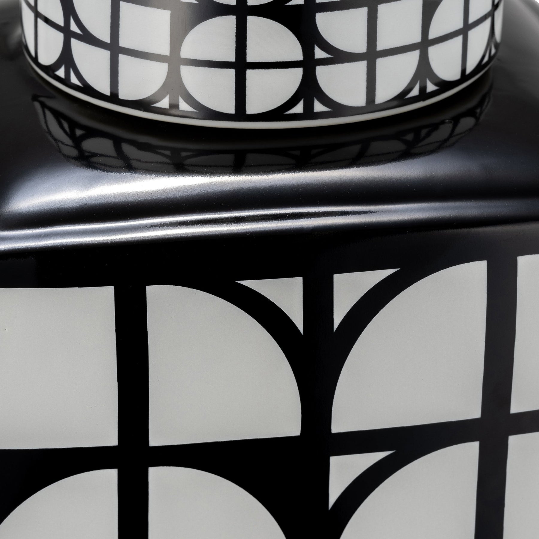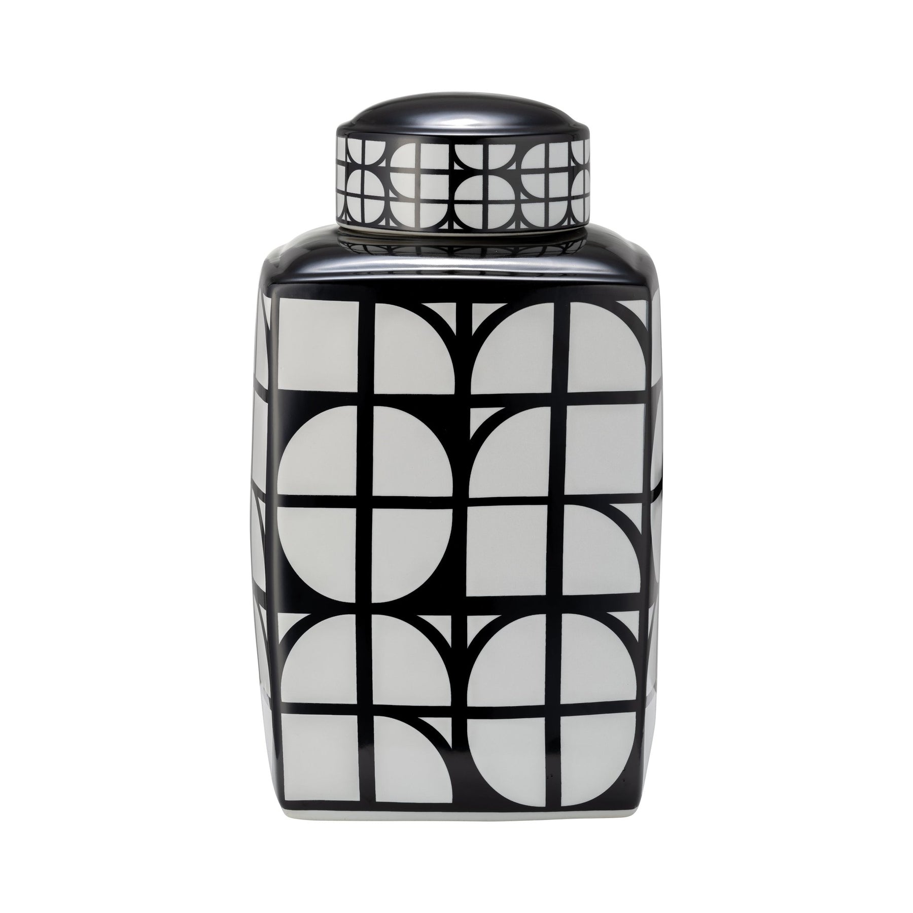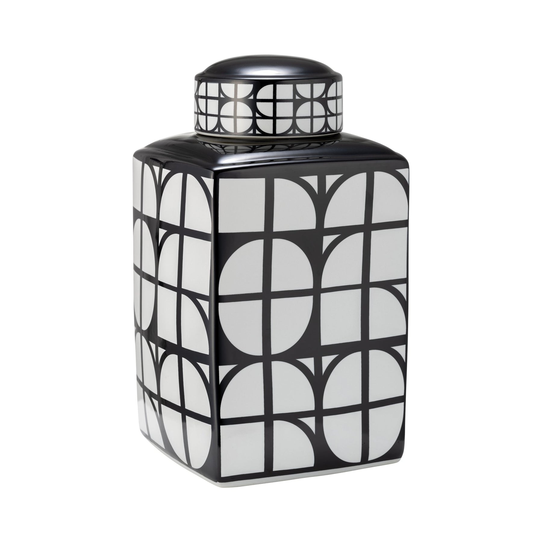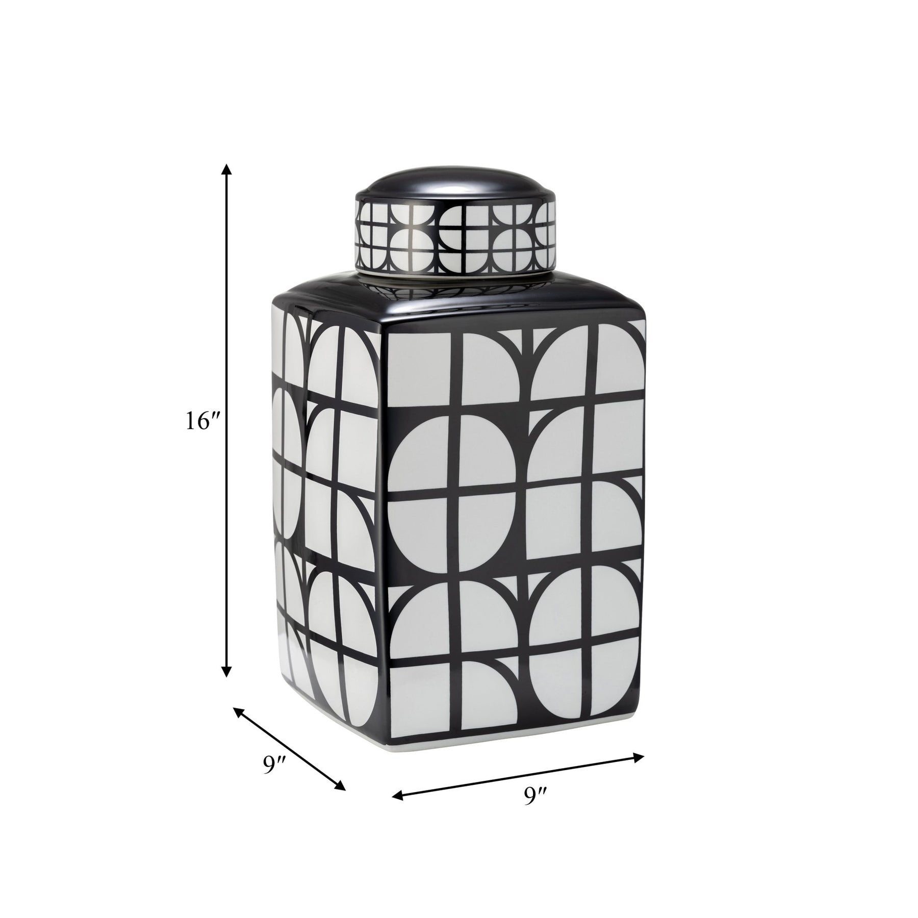 CER, 16"H SQUARE JAR W/ LID, BLACK/WHITE