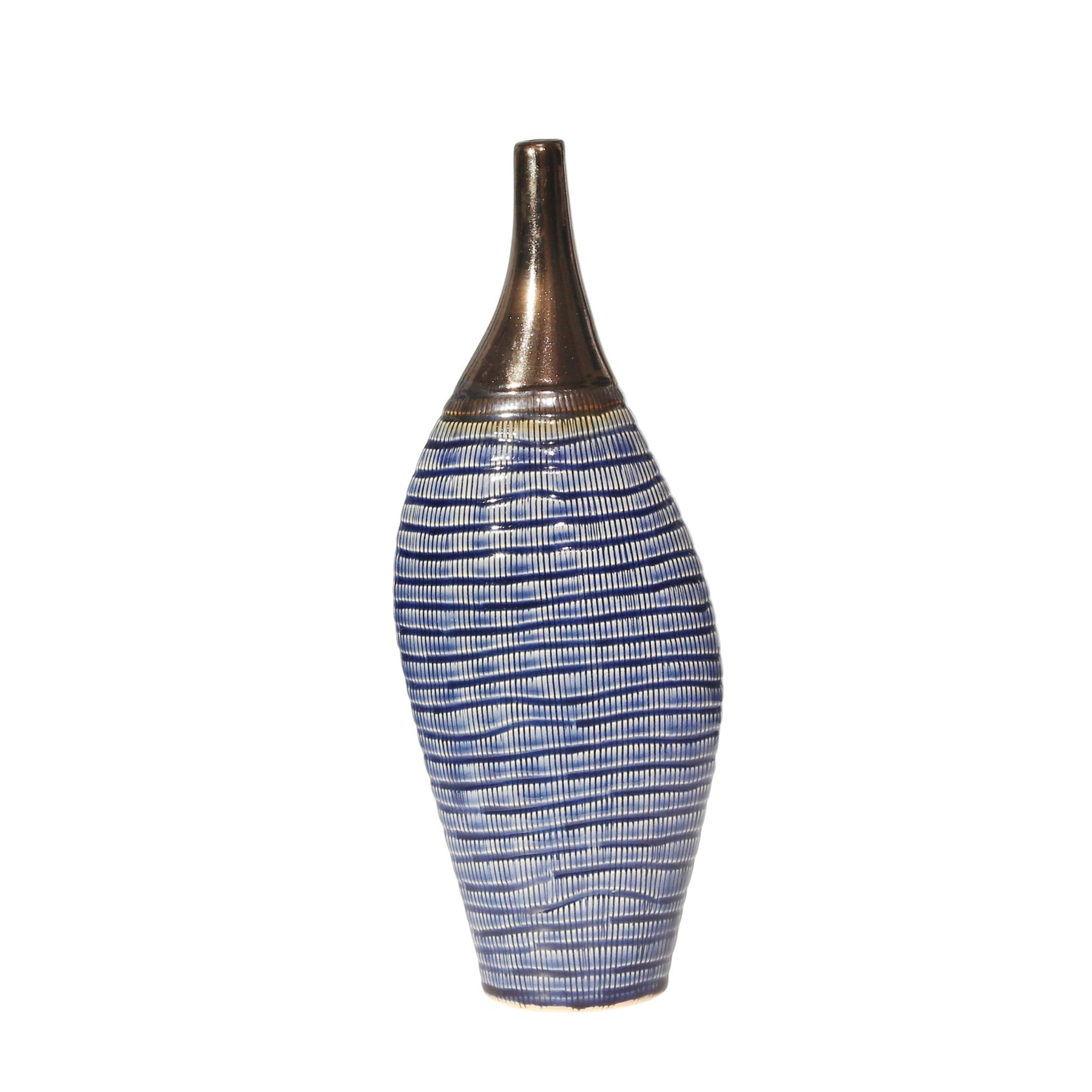CERAMIC 15.75" NARROW NECK VASE, GOLD/BLUE