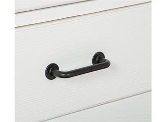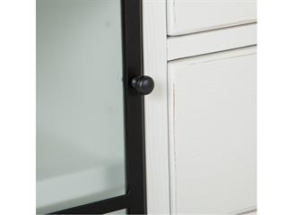 The Harper Springs Wood Buffet features a distressed Silo White finish, textured glass doors, and forged iron hardware for a refined farmhouse look. With spacious drawers, adjustable shelves, and built-in wine storage, it’s perfect for stylish and functional dining room organization.