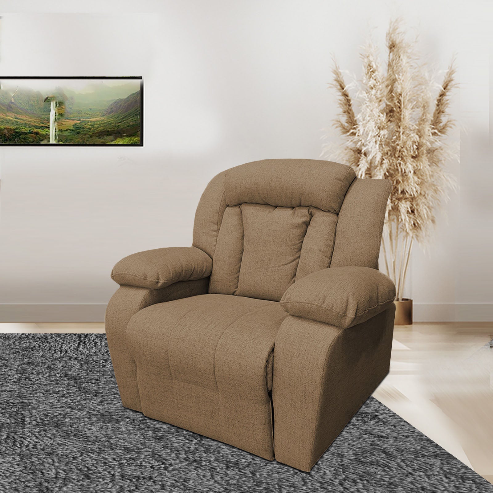 Linen Upholstered Rocking & Rotating Recliner Chair With Bed Mode From In House - Light Beige - NZ50