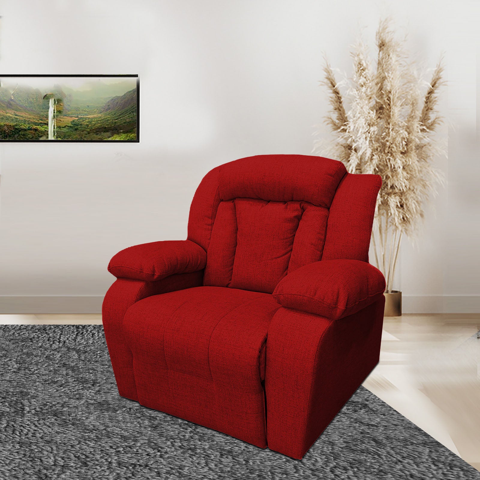 Linen Upholstered Rocking & Rotating Recliner Chair With Bed Mode From In House - Red - NZ50