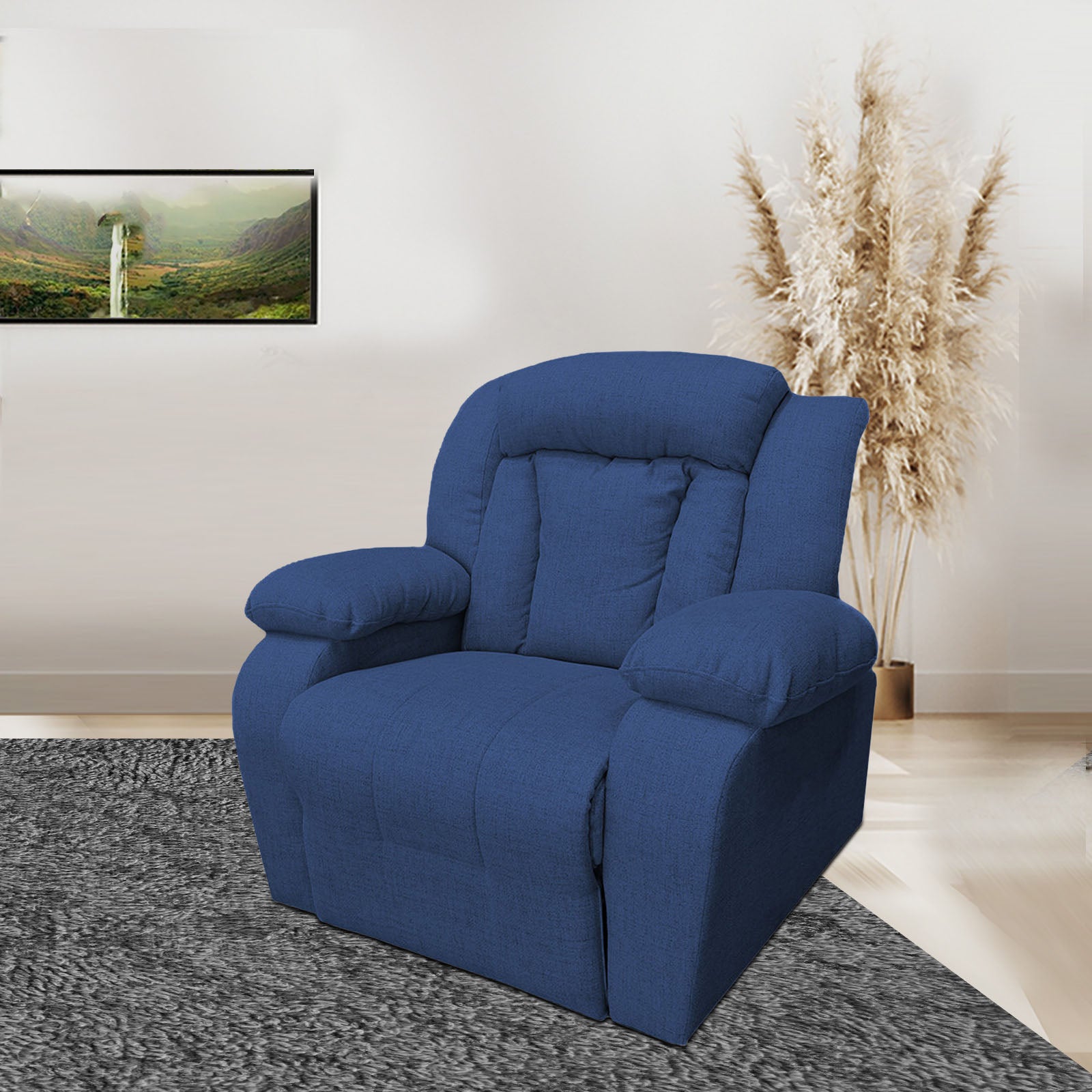 Linen Upholstered Rocking Recliner Chair With Bed Mode From In House - Dark Blue - NZ50