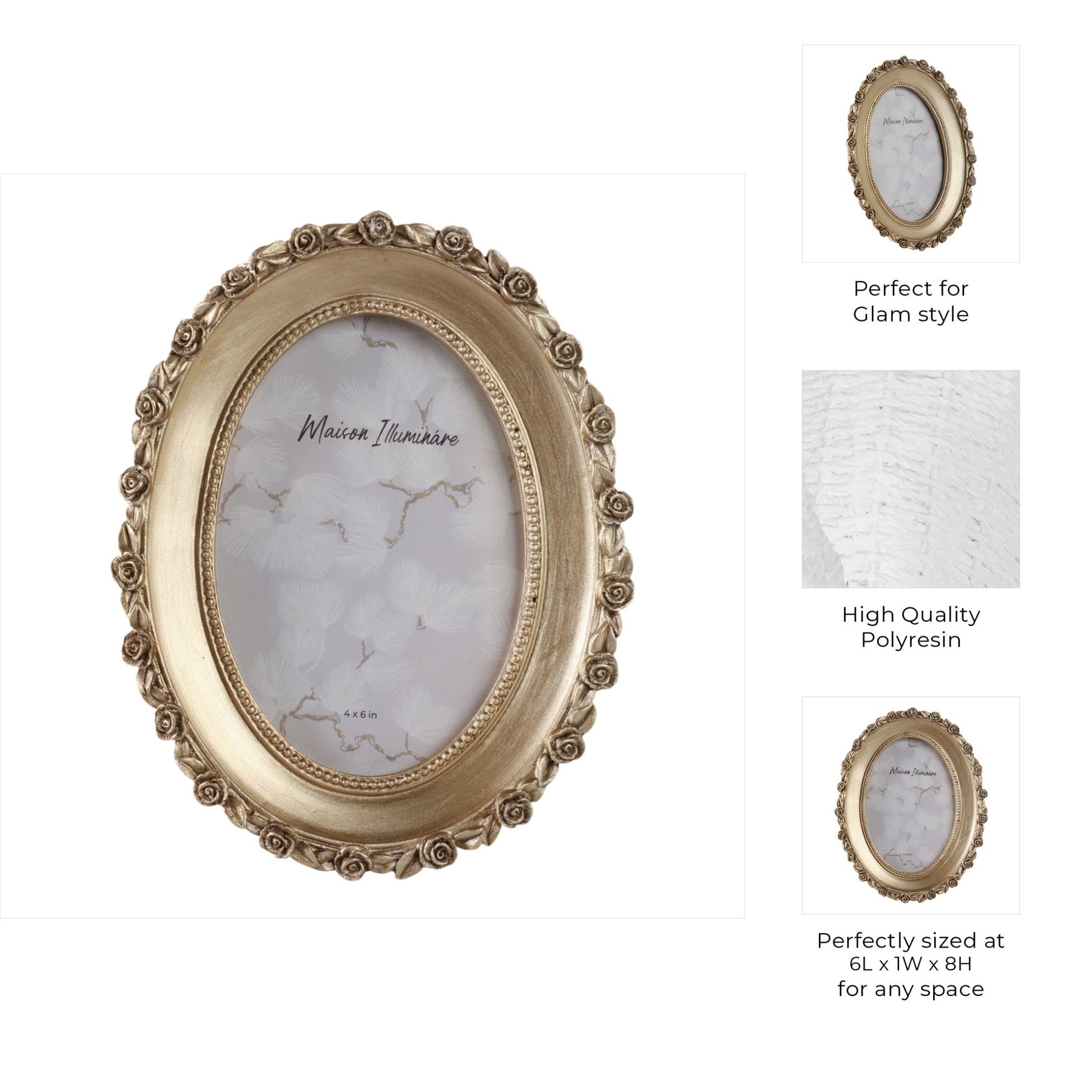 4x6 Oval Photo Frame With Rosette Border, Gold