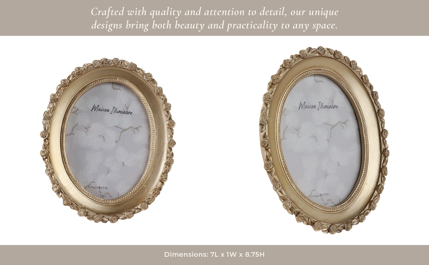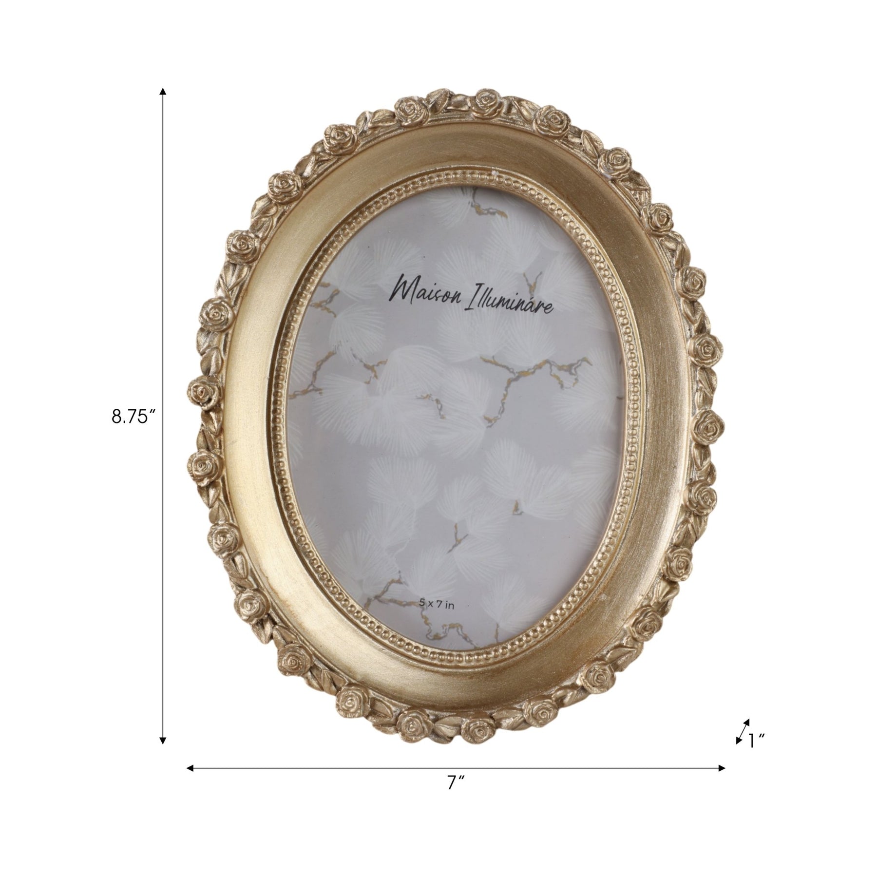 5x7 Oval Photo Frame With Rosette Border, Gold