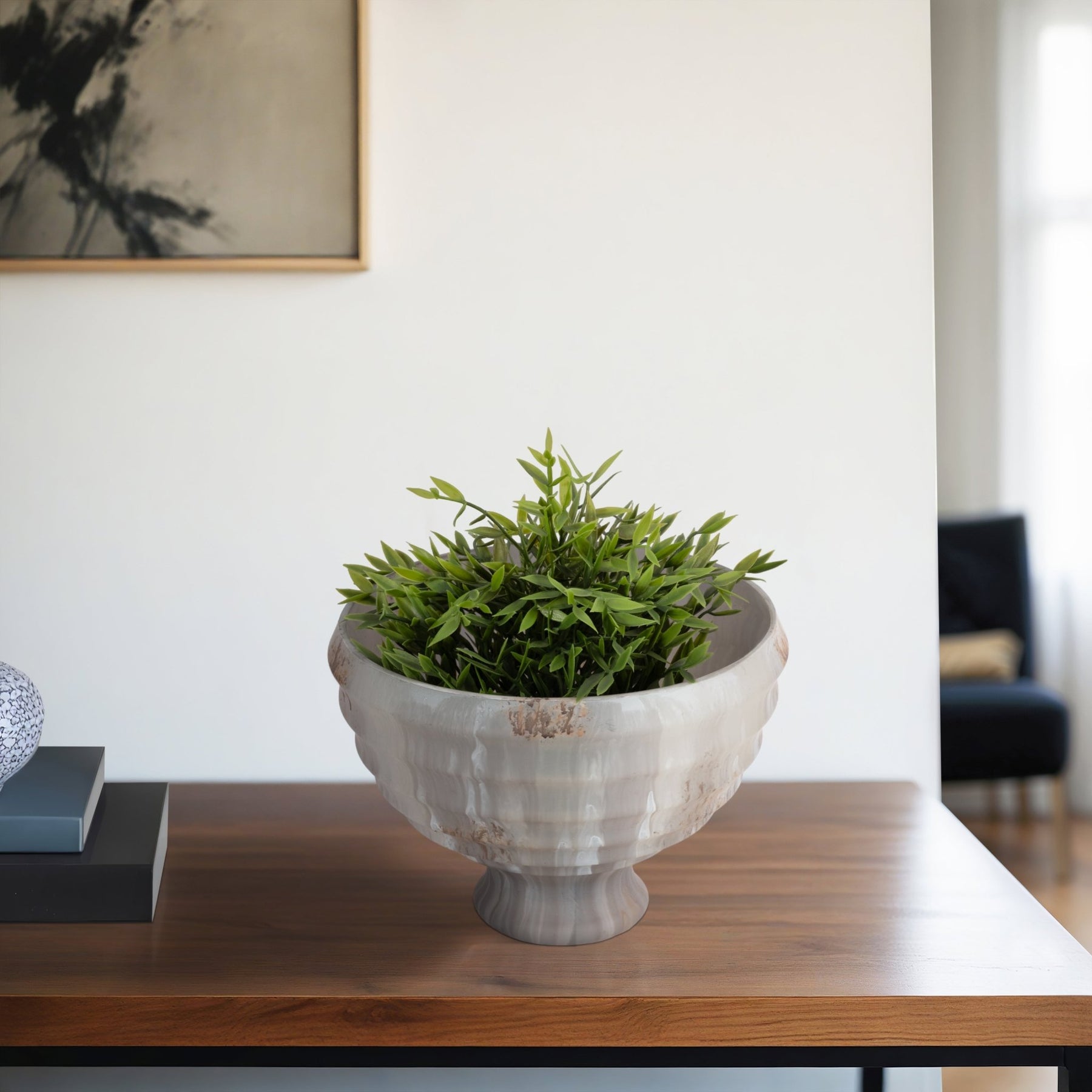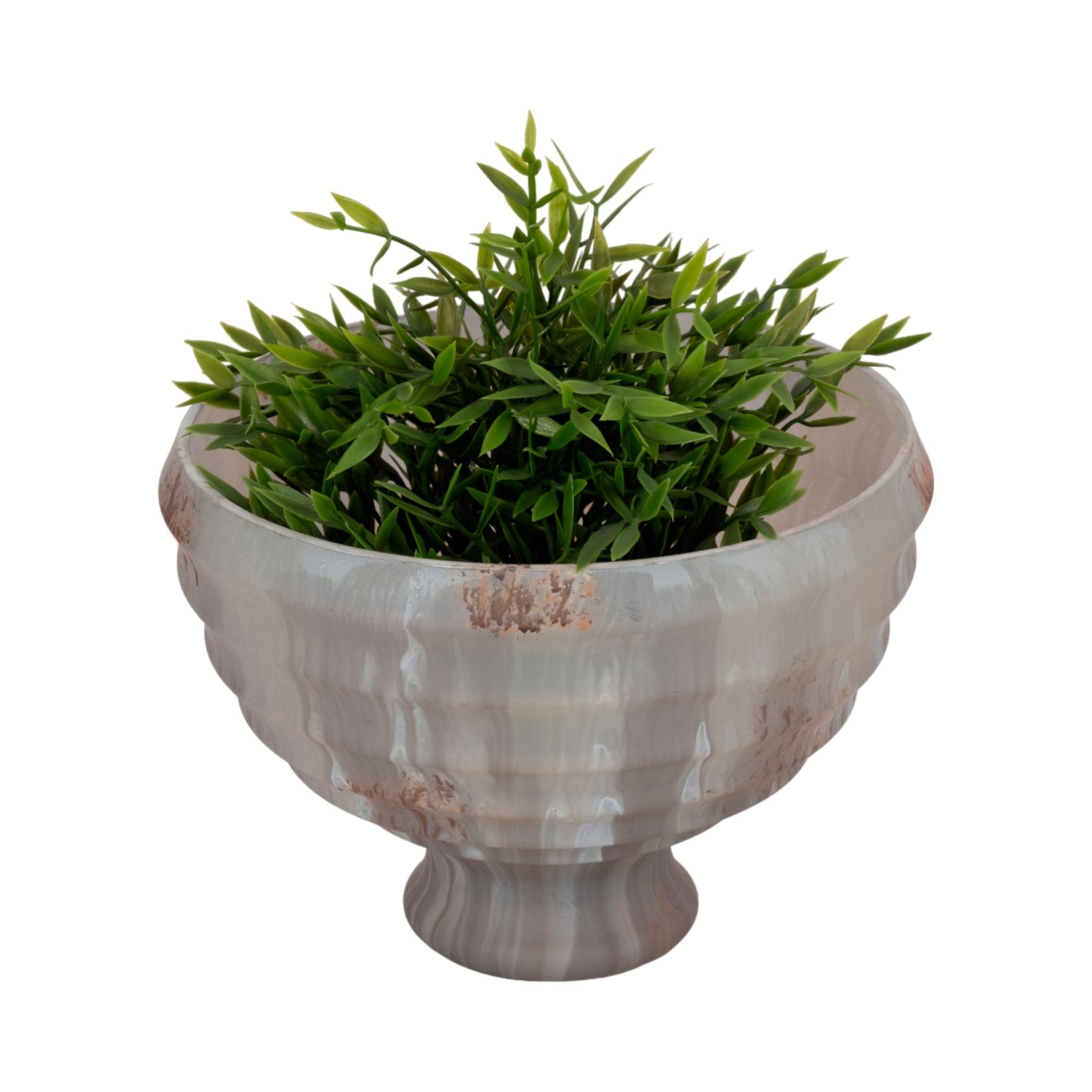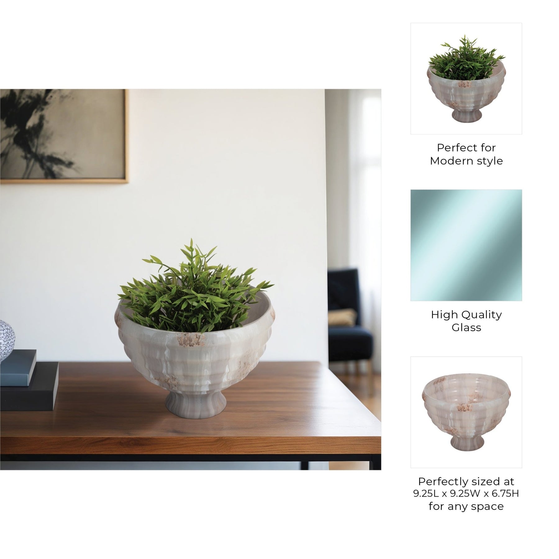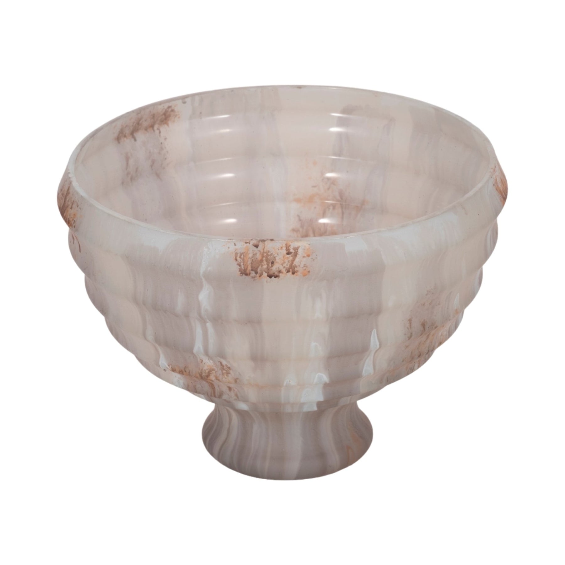 9" Glass Pedestal Bowl Opal Finish, Ivory Multi
