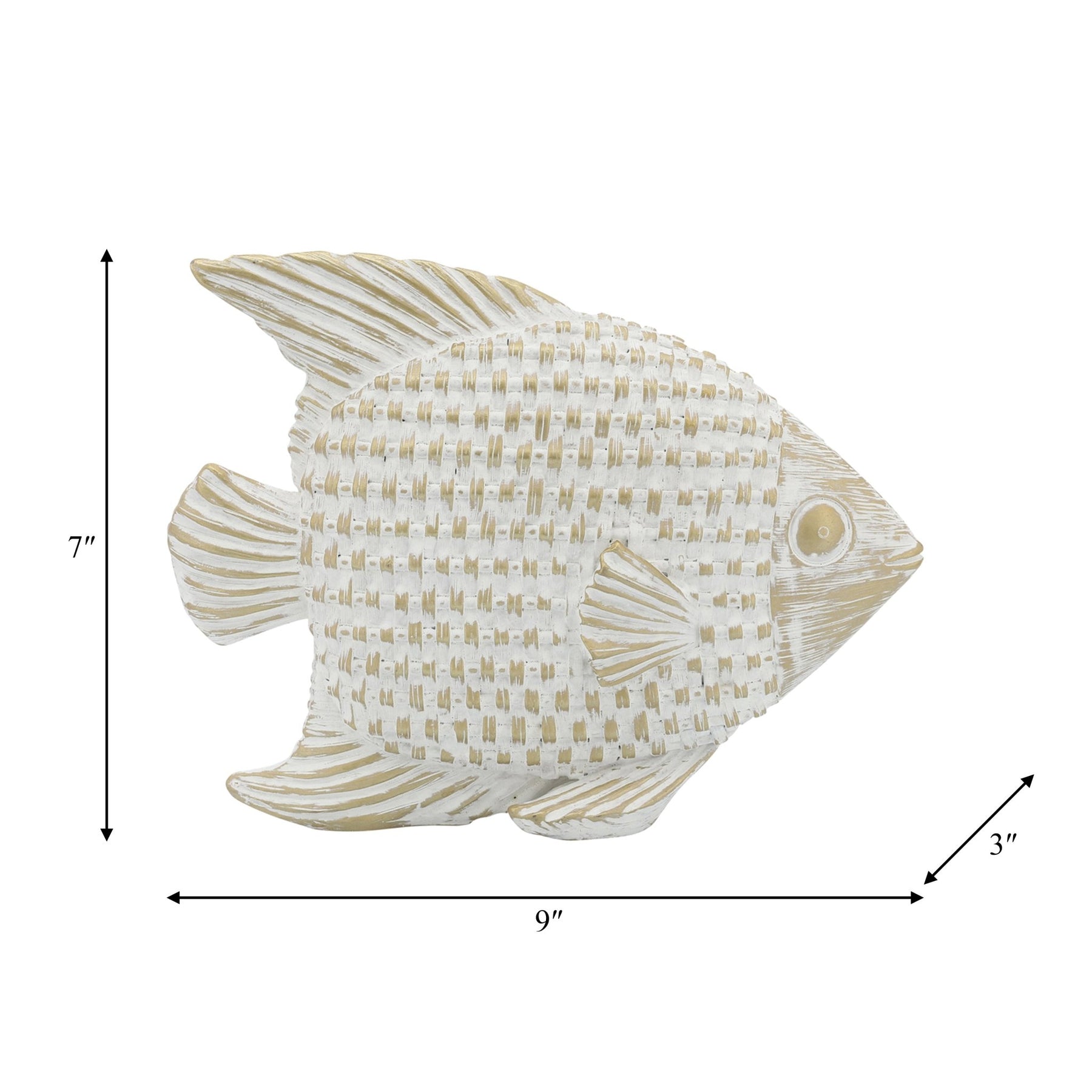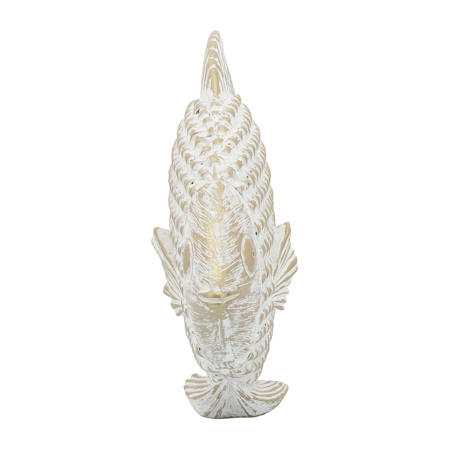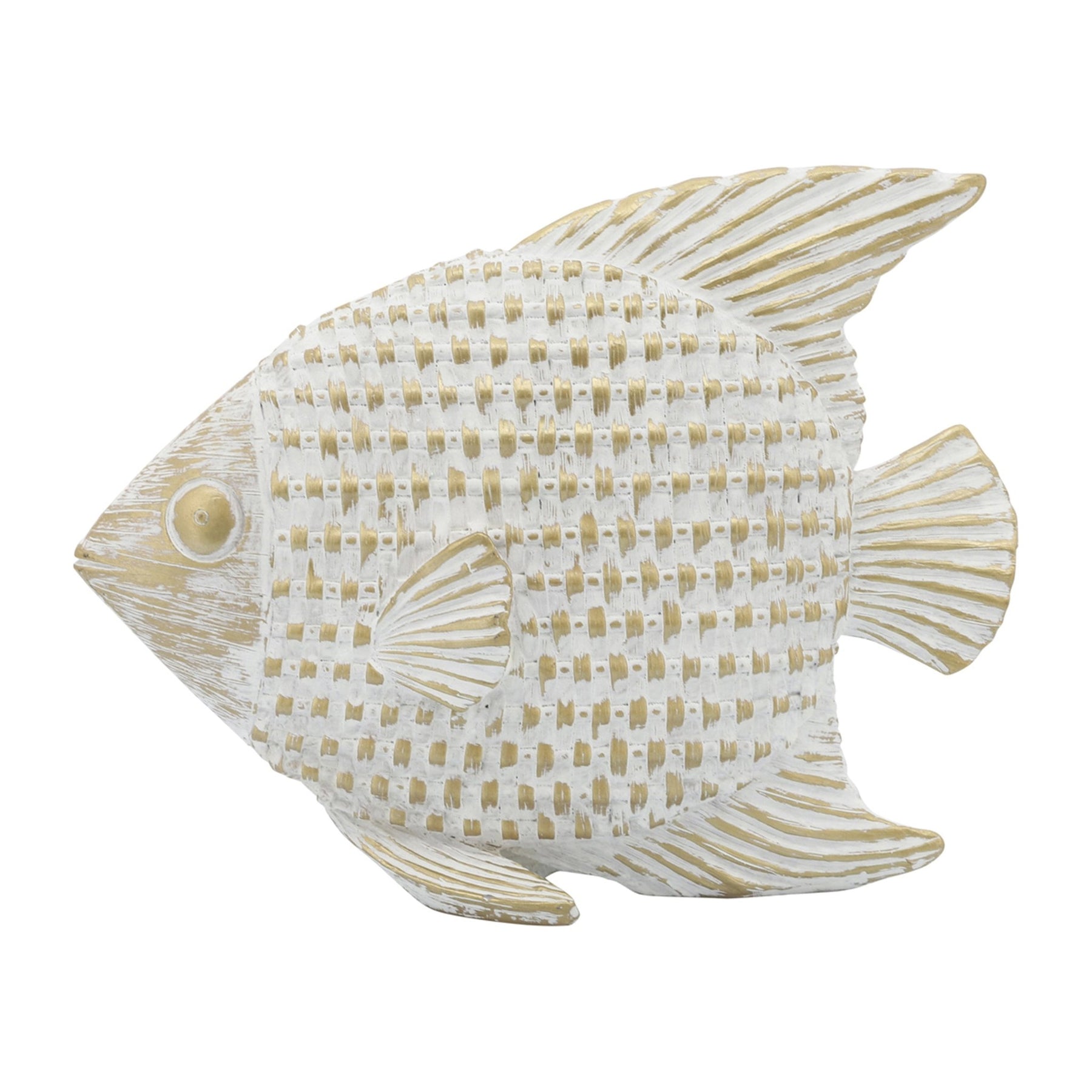 CER,7"H,STANDING FISH DECO,WHT/GLD - Al Rugaib Furniture