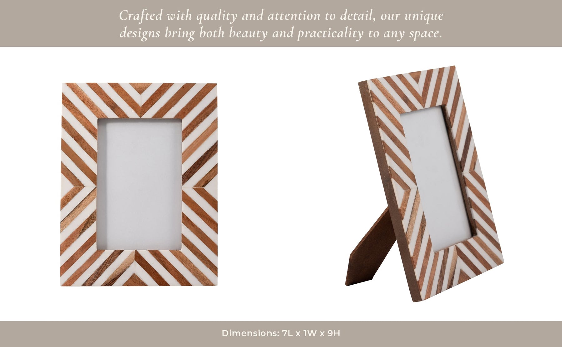 Resin,4X6 Herringbone Lines Phto Frame,White/Wood